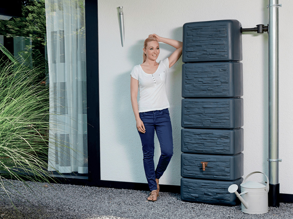 Deze variant van regenton Slim muurmodel 300 L heeft de kleur graniet.