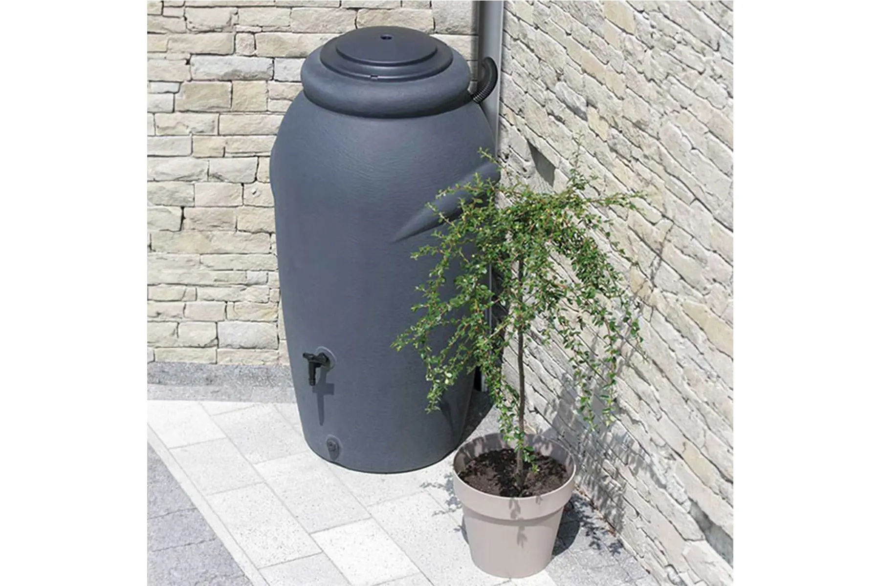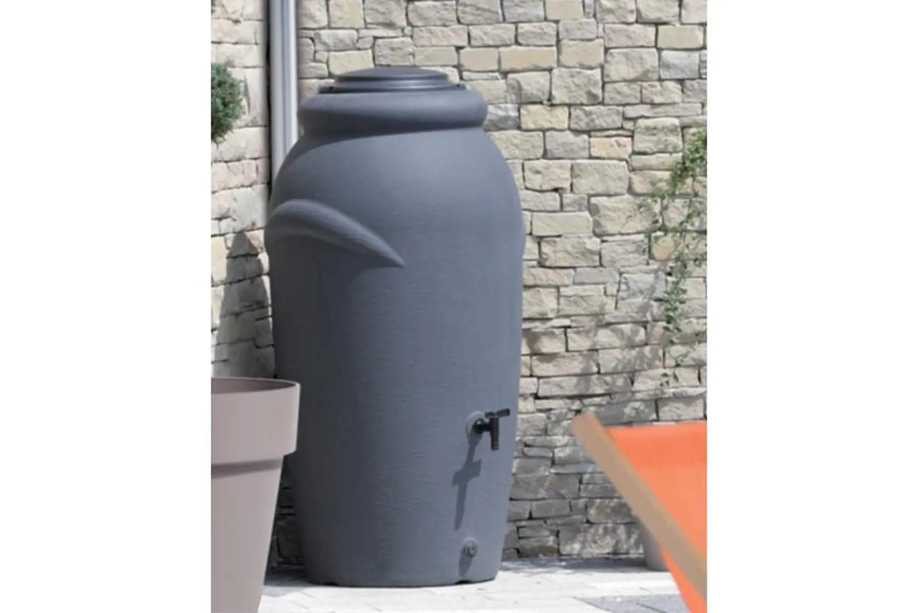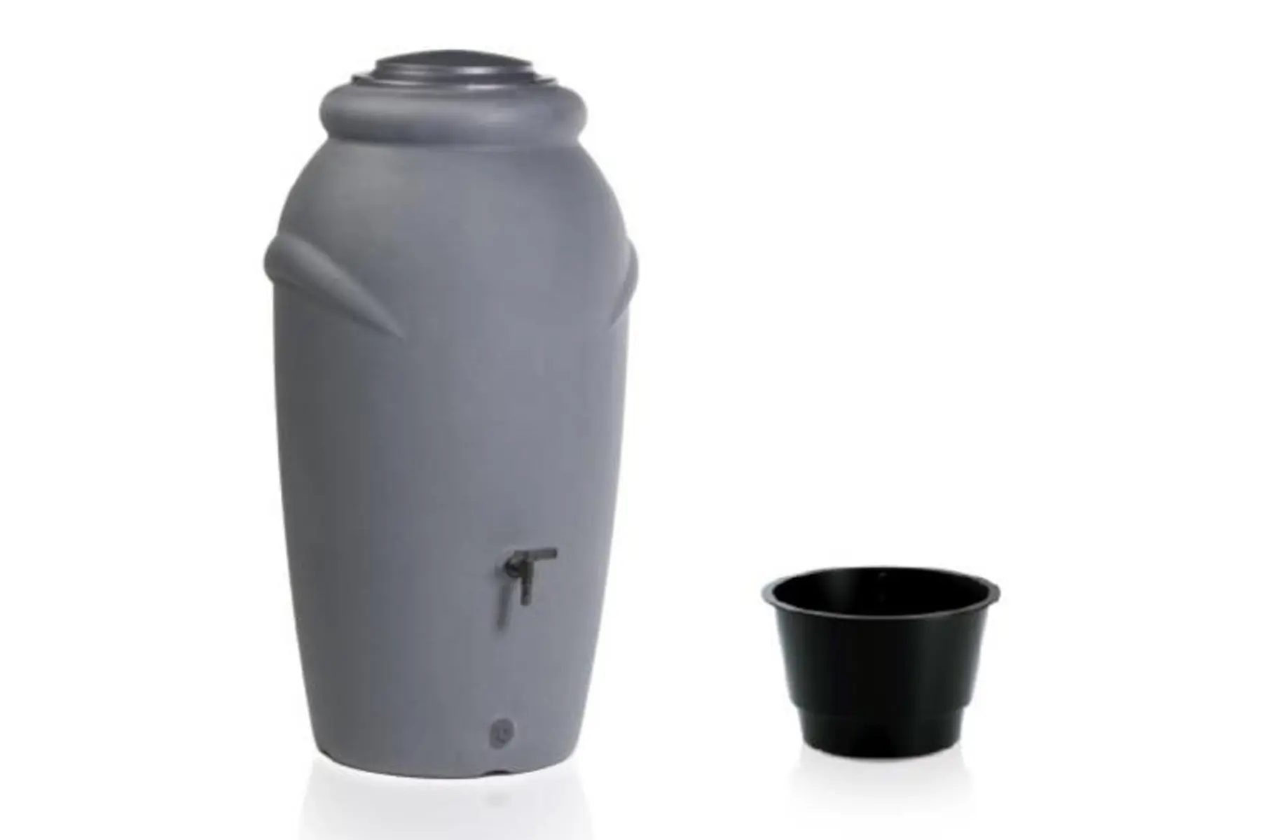Mooie decoratieve kunststof regenton voor de opvang van regenwater. Deze ton heeft bovenin een opening met een deksel van Ø 26 cm. Ze is gemaakt uit duurzame kunststof en ziet er uit als een grote stenen urne. Dit kleinere model is uitermate geschikt voor de kleine ruimte en kan toch nog water opvangen tot 210 liter.