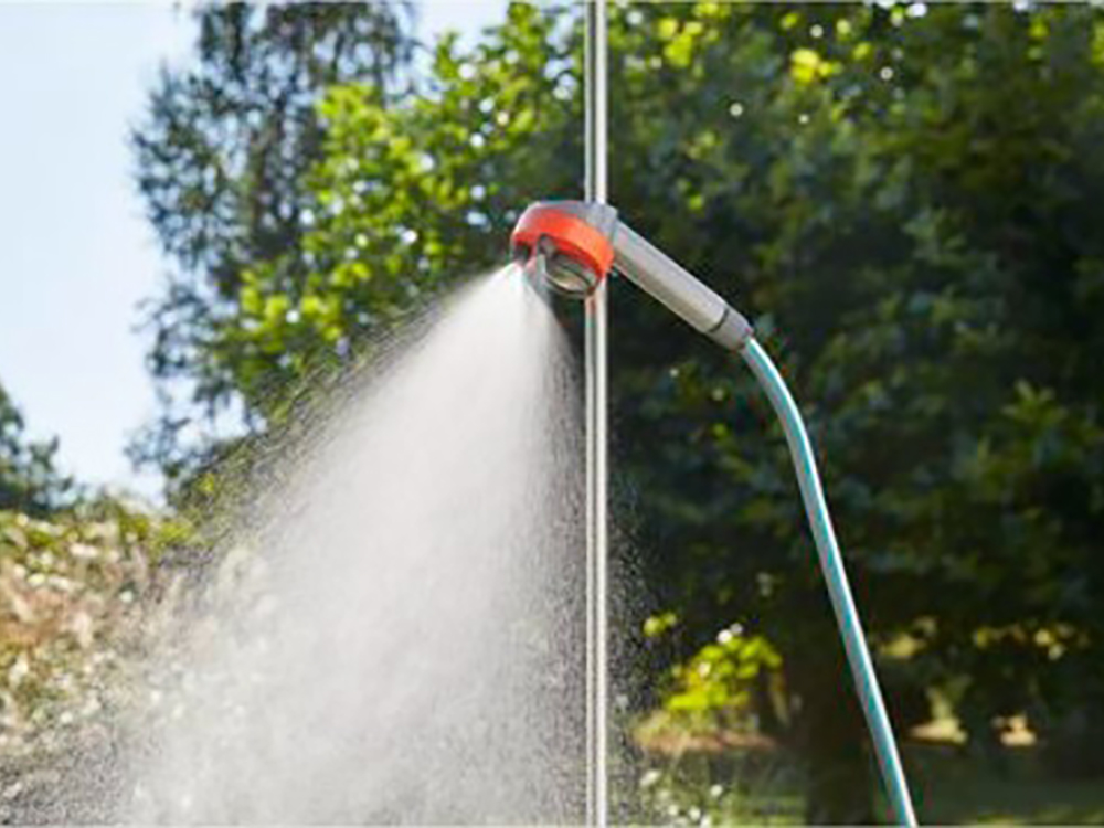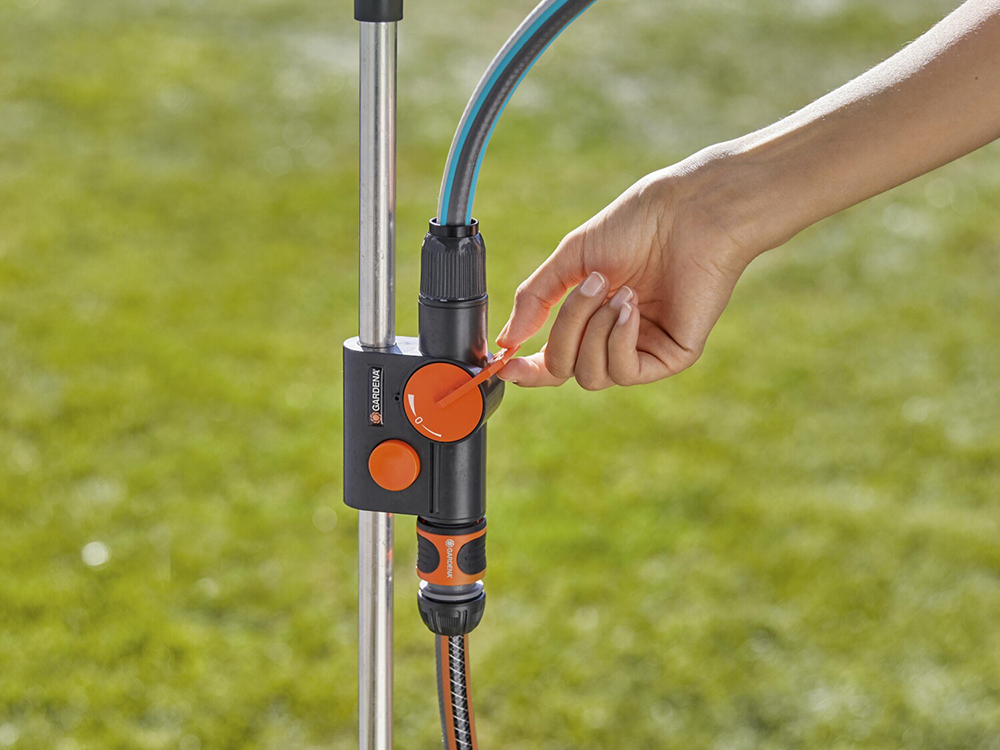 Met de Gardena tuindouche Trio is buiten douchen net zo comfortabel als douchen in jouw badkamer. De douche is door het driepootstatief overal makkelijk te plaatsen. De flexibele en afneembare douchekop, die is aangesloten op een 1,3 meter Gardena tuinslang, biedt meer vrijheid voor douchen in de tuin. Er is keuze uit twee verschillende straalvormen: de brede, zachte straal voor douchen of de fijne verkwikkende sproeinevel.