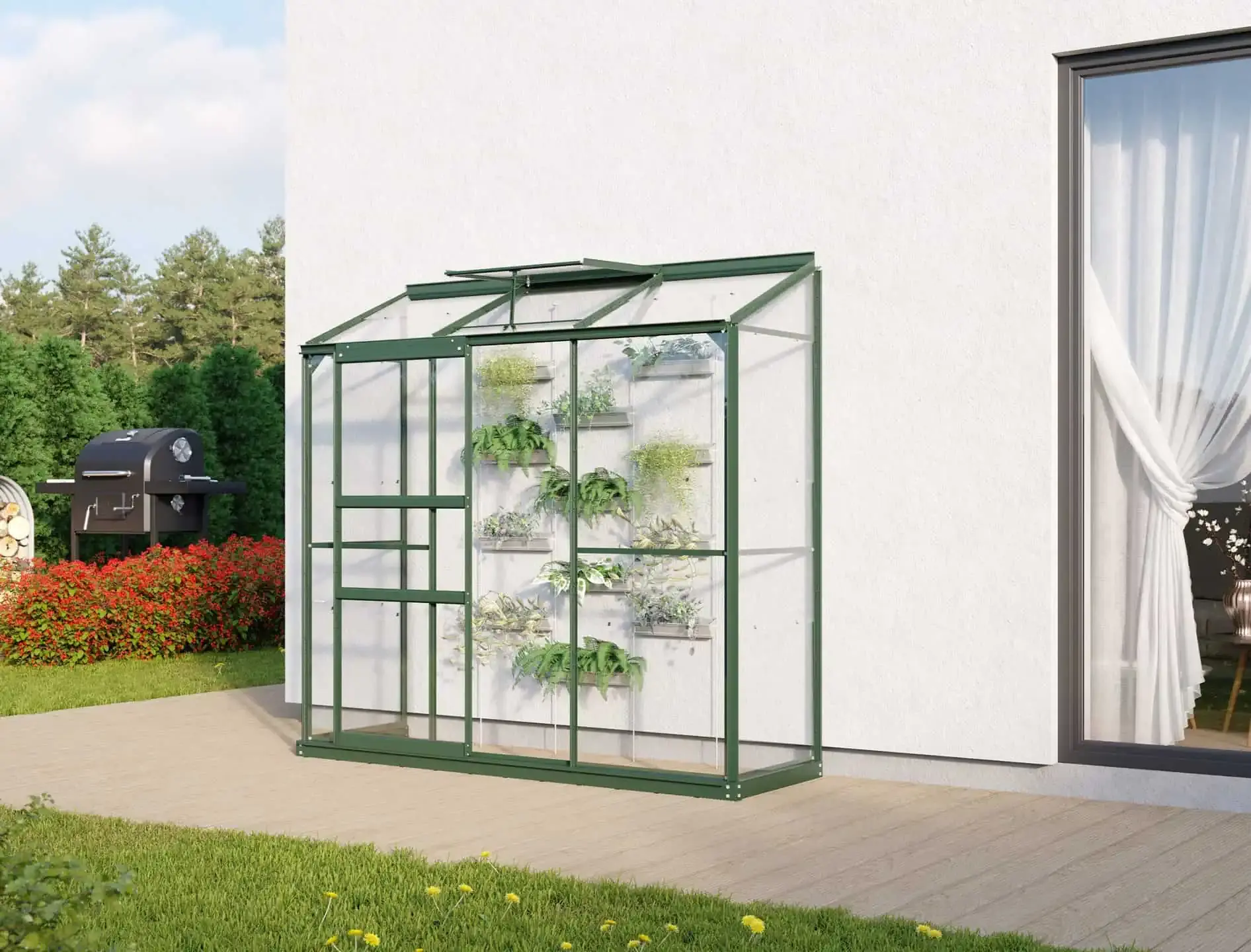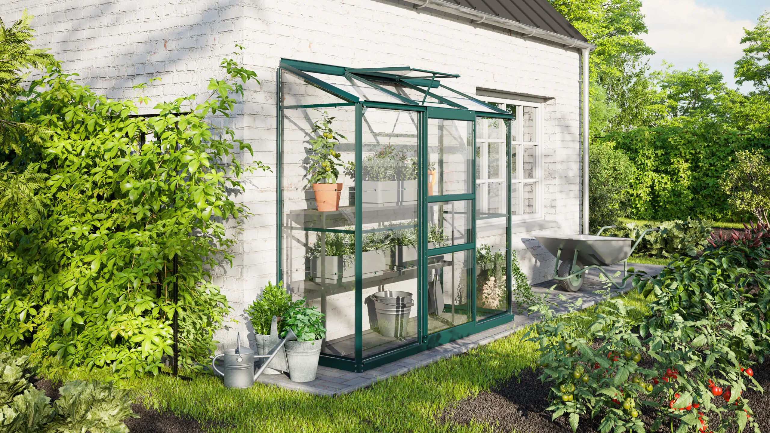 De Ida muurkas is de ideale keuze voor tuiniers met beperkte ruimte. Dit model is speciaal ontworpen voor gebruik op balkons, patio’s of in ommuurde tuinen en biedt uitstekende mogelijkheden voor het kweken van zaailingen, stekjes, maar ook paprika's en tomaten. Dankzij de hoge nok en de soepel schuivende deur is er altijd gemakkelijke toegang, terwijl het dakraam zorgt voor optimale ventilatie.