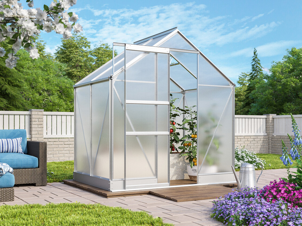 Het frame bestaat uit duurzaam geanodiseerd aluminium zodat de tuinkas er jarenlang als nieuw uitziet. Standaard wordt de tuinkas geleverd met 4 mm polycarbonaatplaten. Deze dubbelwandige platen zijn licht van gewicht, bijna onbreekbaar en bieden een uitstekende isolatie! In optie kan je kiezen voor 6 mm polycarbonaat.