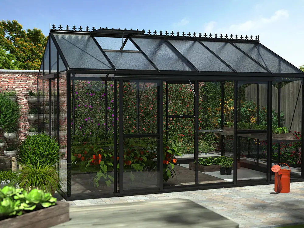 Om de tuinkas volledig naar je zin te maken, zijn er nog verschillende opties mogelijk. Voeg extra dak- en/of zijvensters toe voor meer ventilatie. Aan de voor-, achter- of zijkant kan je ook nog een extra deur toevoegen. Ook een tafelframe op breedte behoort tot de mogelijkheden. Verder bieden wij een zaaipakket aan met daarin zaaibakken van 40 x 44 x 8 cm. Wil je jouw nieuwe kas een klassieke look geven, plaats dan een mooie nokdecoratie bovenop.