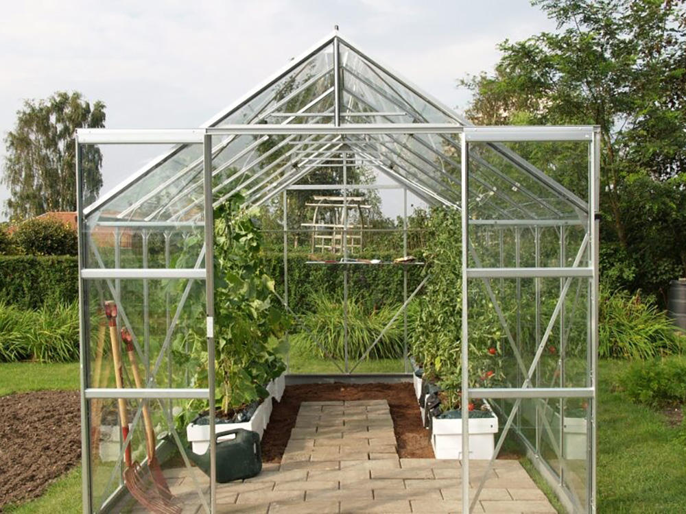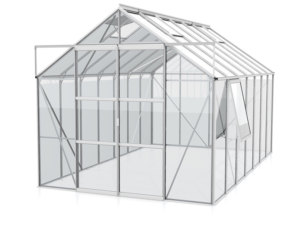 Met een royale hoogte van 248 cm en een breedte van 257 cm biedt de Jupiter meer dan genoeg ruimte. De dakrandhoogte van 154 cm zorgt voor extra stahoogte en werkgemak. Extra stevigheid wordt bereikt door hoekplaten en verstevigingen in de volledige kas, waardoor je ze zonder zorgen zwaarder kunt belasten.