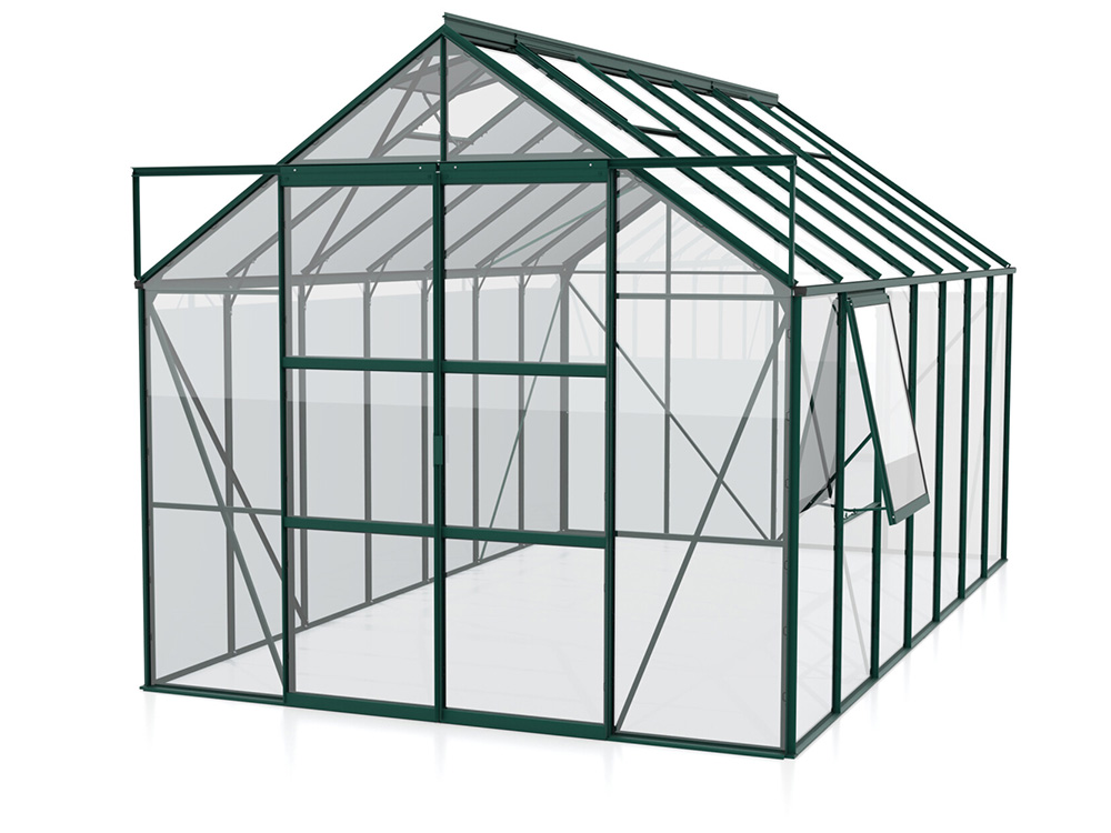 Met een royale hoogte van 248 cm en een breedte van 257 cm biedt de Jupiter meer dan genoeg ruimte. De dakrandhoogte van 154 cm zorgt voor extra stahoogte en werkgemak. Extra stevigheid wordt bereikt door hoekplaten en verstevigingen in de volledige kas, waardoor je ze zonder zorgen zwaarder kunt belasten.