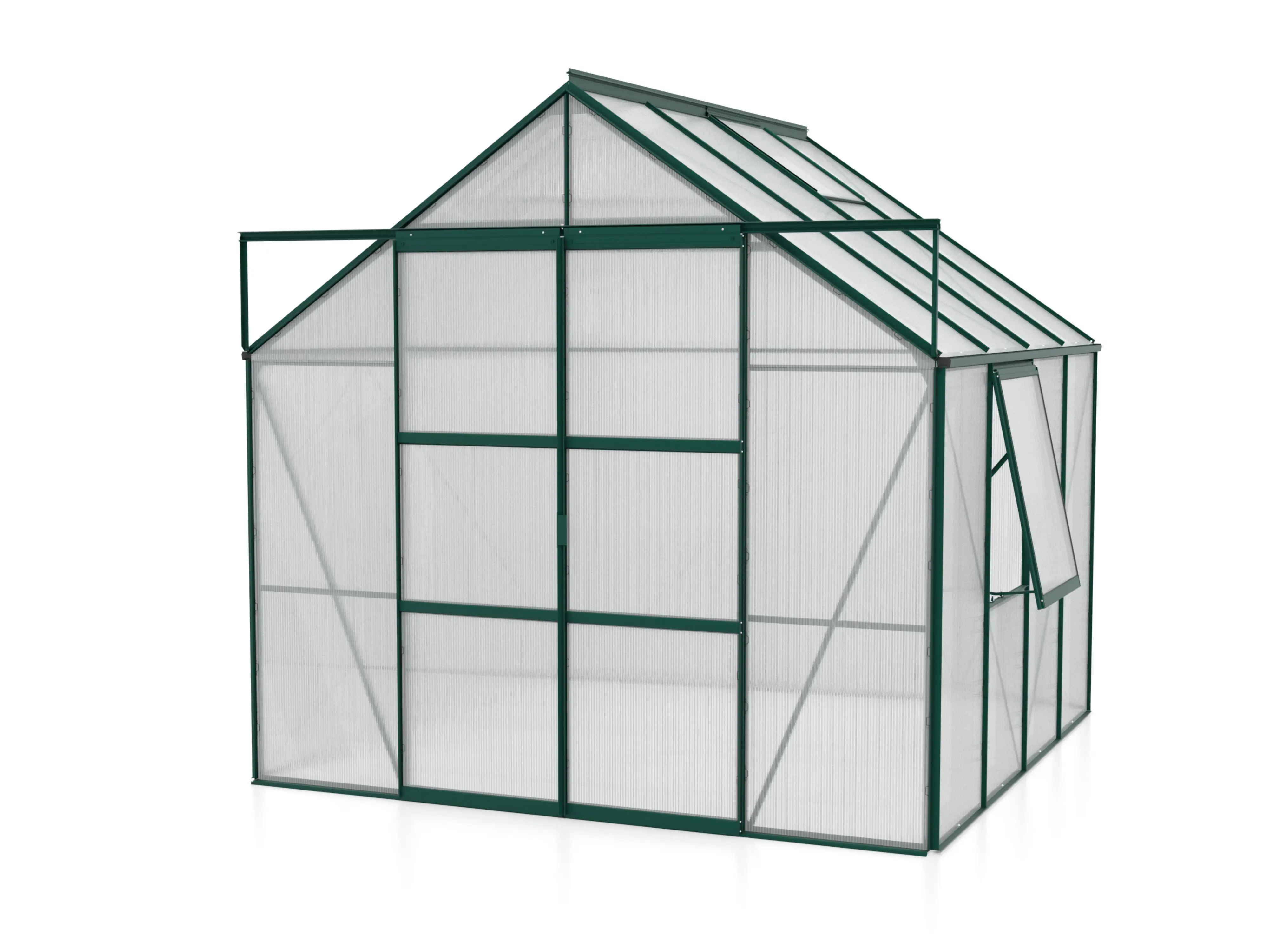 Creëer de ideale omgeving om te kweken, te zaaien en te oogsten met de ruime tuinkas Jupiter van Vitavia. Het is een topmodel uitgerust met een dubbele schuifdeur, 2 tot 4 dakramen afhankelijk van de grootte, en een extra zijvenster, elk voorzien van uitzetters om voor voldoende ventilatie te zorgen.