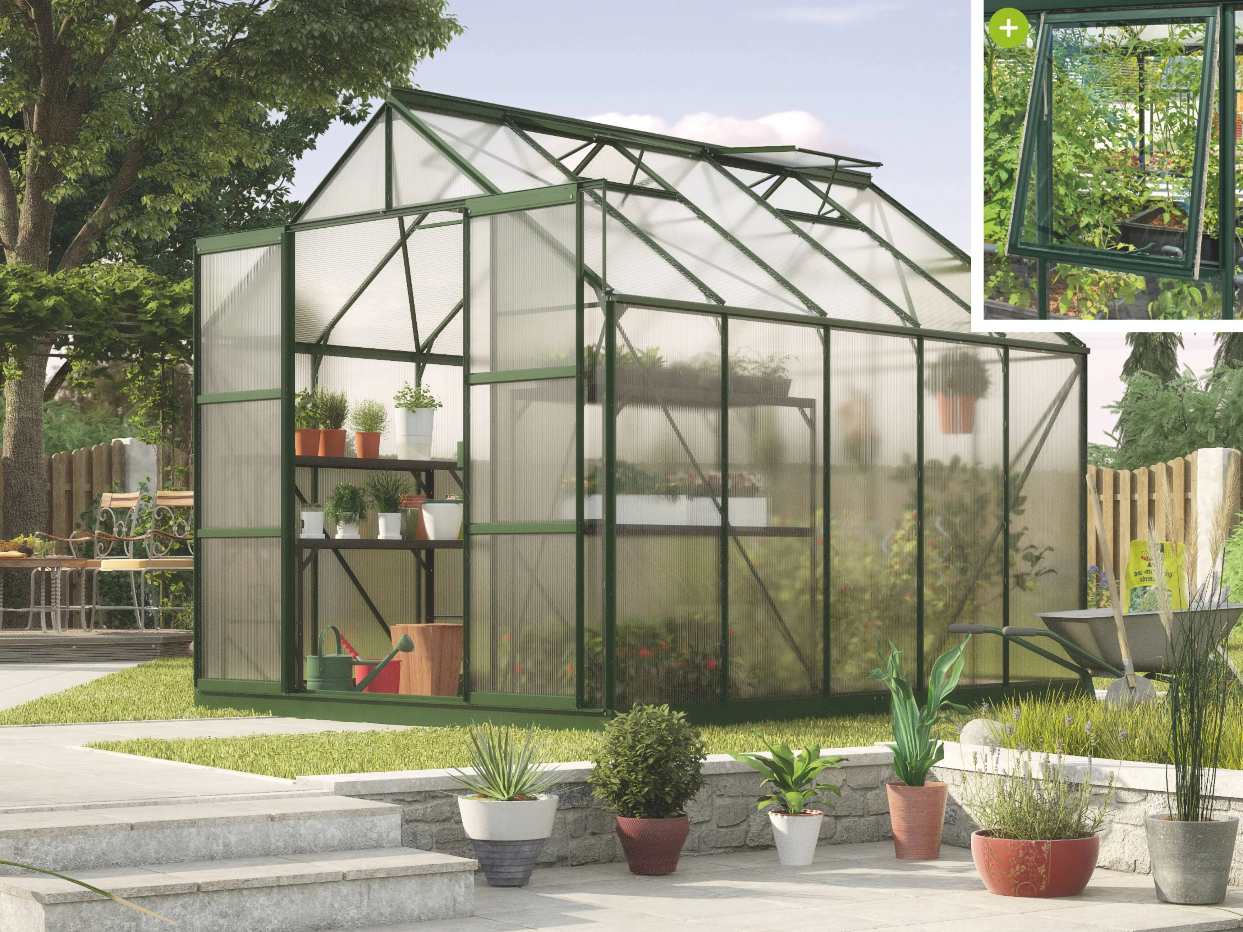 Geef je tuin een stijlvolle upgrade met de tuinkas Jupiter van Vitavia. Deze tuinkas combineert functionaliteit met elegantie. Perfect voor het kweken van groenten en kruiden in een beschermde omgeving. Dit luxueuze model heeft een dubbele schuifdeur, 2 tot 4 dakramen (afhankelijk van de grootte) en een extra zijvenster voor optimale ventilatie.