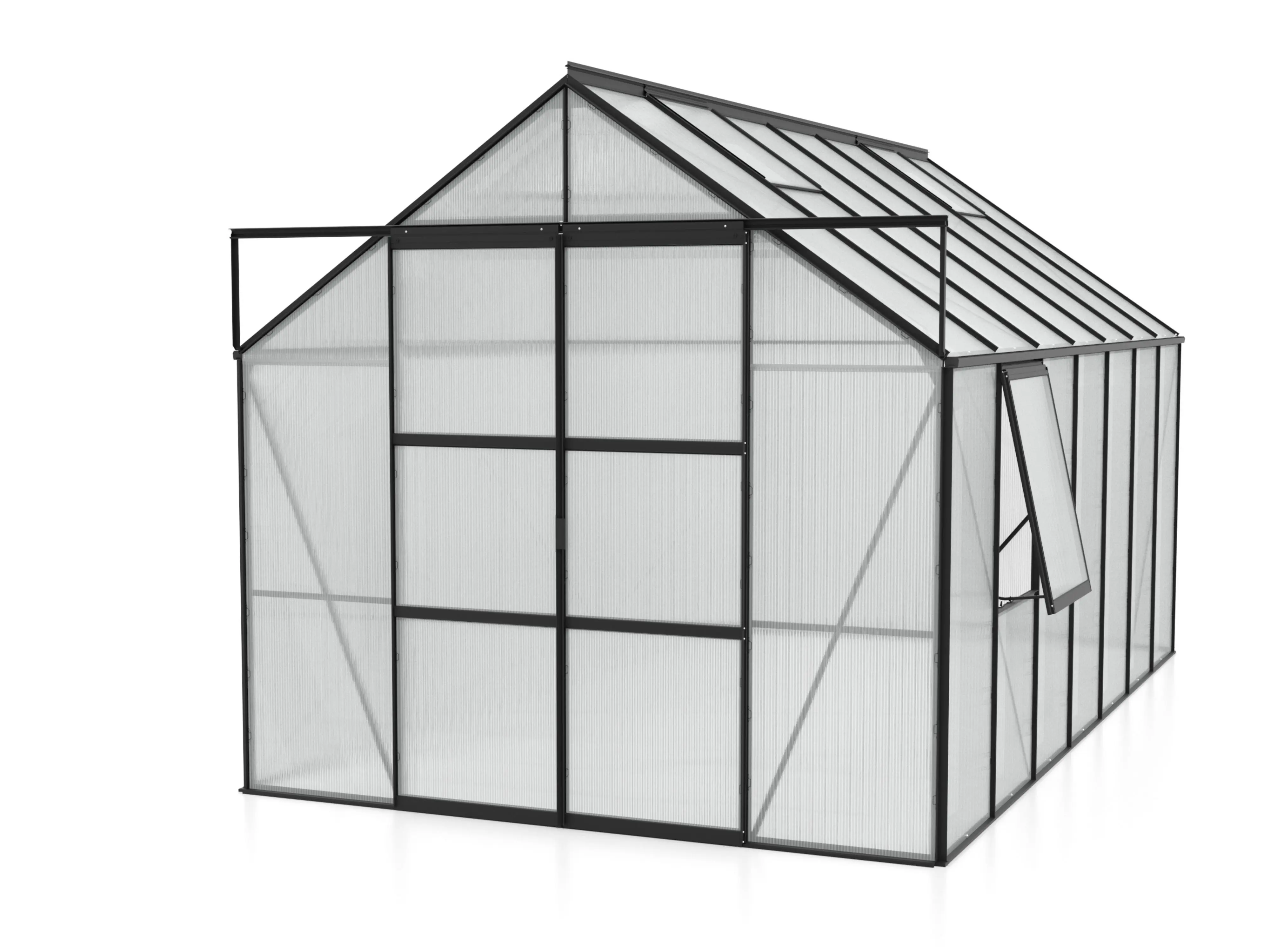 Met een royale hoogte van 248 cm en een breedte van 257 cm biedt de Jupiter meer dan genoeg ruimte. De dakrandhoogte van 154 cm zorgt voor extra stahoogte en werkgemak. Extra stevigheid wordt bereikt door hoekplaten en verstevigingen in de volledige kas, waardoor je ze zonder zorgen zwaarder kunt belasten.
