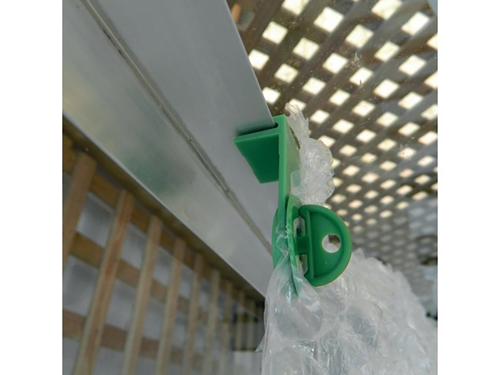 Ideaal voor het eenvoudig plaatsen van nopjesplastiek, isolatie, schaduwdoek, zeil of andere elementen met een draai- en clickbeweging. Inclusief opening/haak aan clip voor steundraad. Past in de profielen van bijna alle aluminium serre of kassen.
