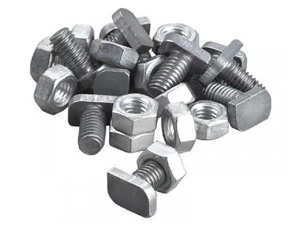 Bouten met platte kop en moeren die gebruikt worden bij de constructie van kweekkassen, om de serre of kas in te richten naar eigen wens. Ideaal om bijvoorbeeld plankensteunen, plantengeleiders en schappen in jouw tuinkas te bevestigen.
