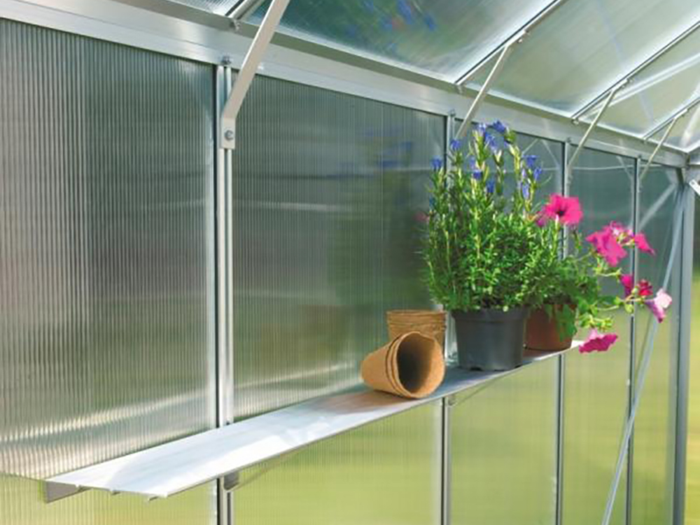 Ontdek de veelzijdigheid van dit aluminium schap, dat je eenvoudig aan het frame van je kas monteert. Met deze handige toevoeging creëer je in een handomdraai extra opbergruimte voor je planten en alledaagse gebruiksvoorwerpen. Of je nu potten, gereedschap of andere tuinbenodigdheden wilt opbergen, dit schap houdt alles binnen handbereik en georganiseerd. Maak van je kas een efficiënte en opgeruimde werkruimte met dit praktische aluminium schap!