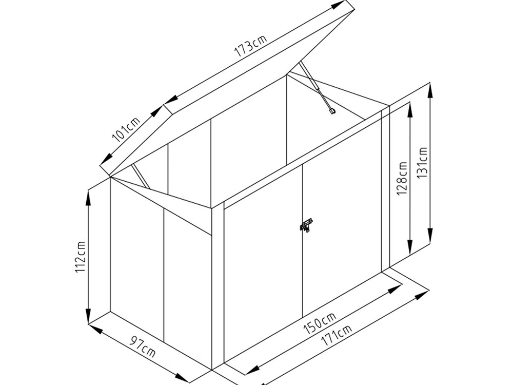 De berging is voorzien van twee opendraaiende deuren aan de voorzijde en een deksel met gasveer, waardoor het openen en sluiten van de berging gemakkelijk gaat. Dankzij het eenvoudige design past de Polly B berging perfect in elke tuin.