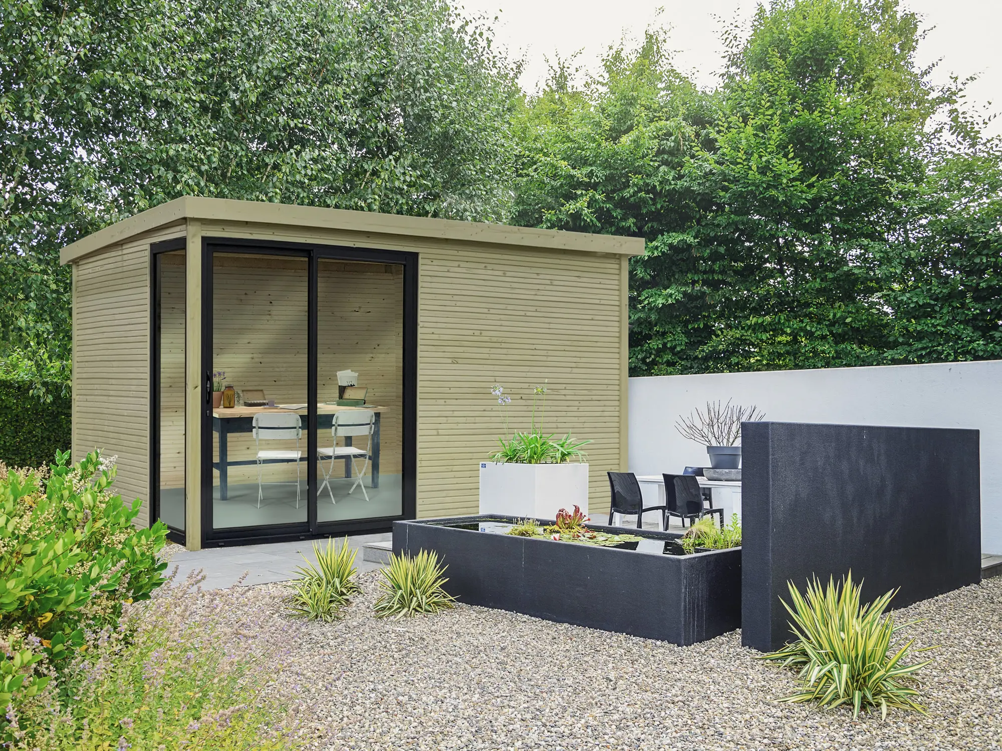 Het moderne tuinhuis Faro is een stijlvolle toevoeging aan uw tuin. Het tuinhuis is gemaakt van gecertificeerd Noord-Europees vurenhout met een wanddikte van 28mm, waardoor het duurzaam en robuust is. Het grote schuifraam en het vaste raam zorgen voor veel lichtinval in het tuinhuis, waardoor u kunt genieten van een heldere en lichte ruimte.