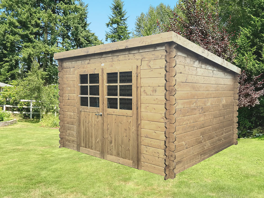 Ontdek het moderne tuinhuis Riom, een echte eyecatcher voor je tuin. Dit tuinhuis heeft een uniek plat dak en is uitgevoerd volgens het 'place & plug' principe. Hierbij worden de houten profielen met tand en groef op elkaar geplaatst en over de hoeken kruiselings in elkaar geschoven. Dit zorgt voor een stevige constructie van het tuinhuis.