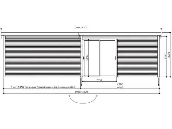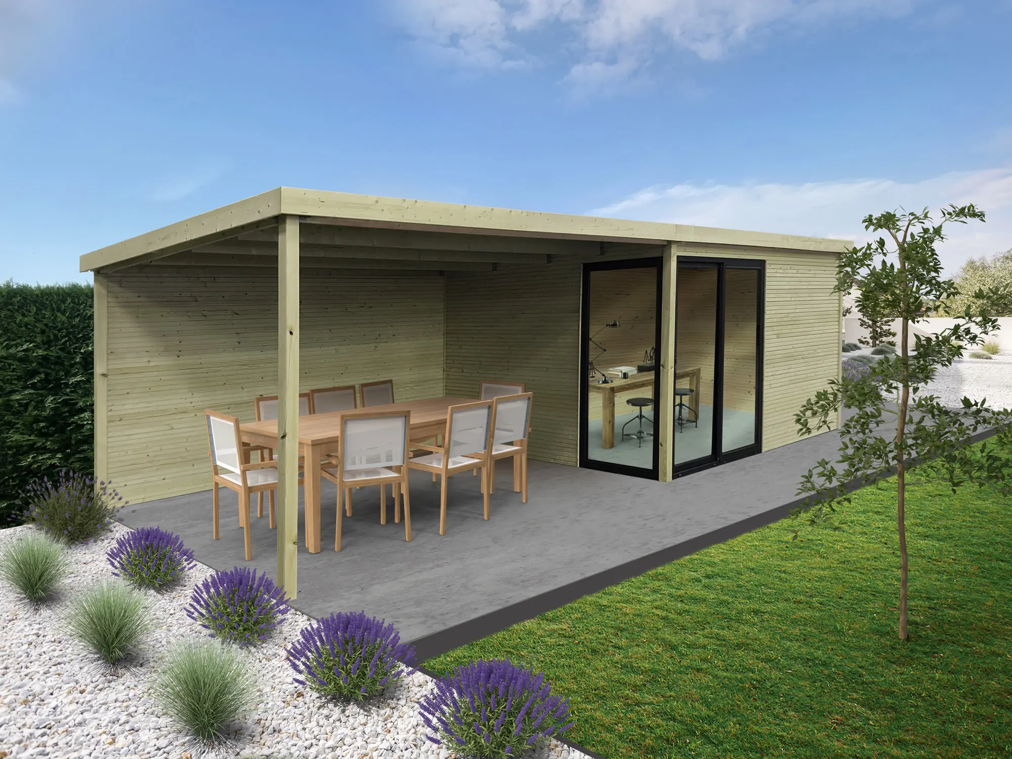 • Modern tuinhuis (404 x 304 cm) met overdekt terras (395 x 304 cm)