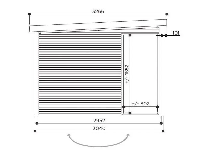 Het zelfbouwpakket van het Tuinhuis Tavira is eenvoudig te monteren dankzij de opbouw in paneelconstructie. Het pakket wordt geleverd met een glazen schuifraam, een slot, een ventilatiekit, een dakroofing en een raam met transparant glas.