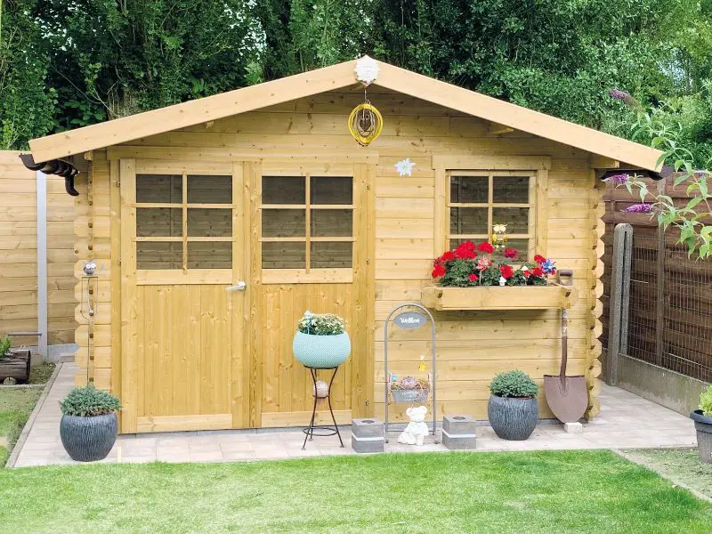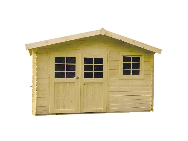 Het traditionele blokhut bouwsysteem waarbij houten profielen met tand en groef op elkaar worden geplaatst. Voorzien van een dak met houten planken van 16mm en van een zwarte roofing. Transparant gehard glas. Slot met kinderbeveiliging. Ventilatieset.