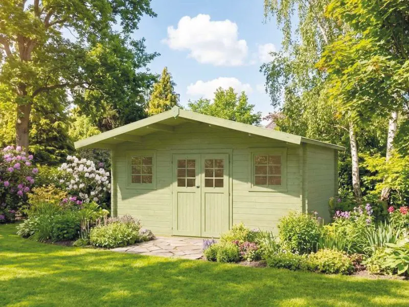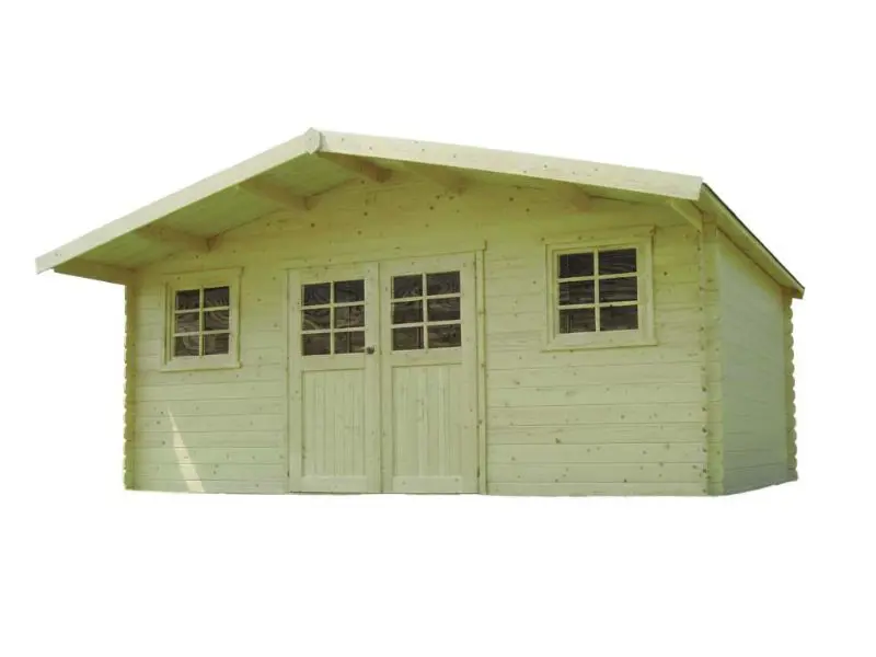 Het traditionele blokhut bouwsysteem waarbij houten profielen met tand en groef op elkaar worden geplaatst. Voorzien van een dak met houten planken van 16mm en van een zwarte roofing. Transparant gehard glas. Slot met kinderbeveiliging. Ventilatieset.