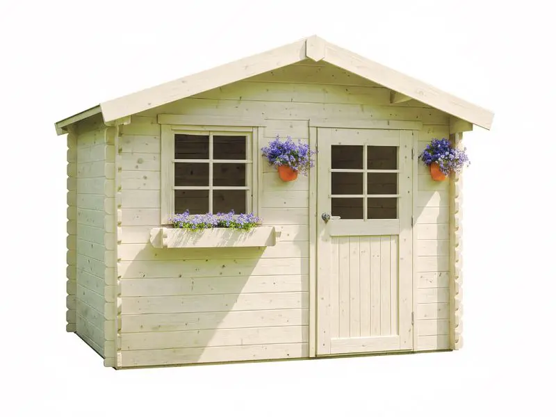 Het traditionele blokhut bouwsysteem waarbij houten profielen met tand en groef op elkaar worden geplaatst. Voorzien van een dak met houten planken van 16mm en van een zwarte roofing. Transparant gehard glas. Slot met kinderbeveiliging. Ventilatieset.
