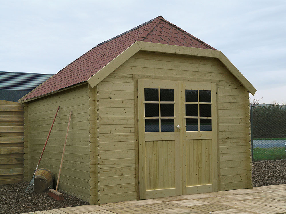 Het Tuinhuis Limerick is een standaard model met een zadeldak, dat gebruik maakt van het 'place & plug' principe. De houten profielen met een dikte van 28 mm worden eenvoudig in elkaar geschoven dankzij het tand- en groefsysteem. Hierdoor is geen ingewikkelde montage nodig en staat uw tuinhuis snel en stevig.