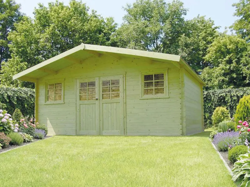 Het traditionele blokhut bouwsysteem waarbij houten profielen met tand en groef op elkaar worden geplaatst. Voorzien van een dak met houten planken van 16mm en van een zwarte roofing. Transparant gehard glas. Slot met kinderbeveiliging. Ventilatieset.
