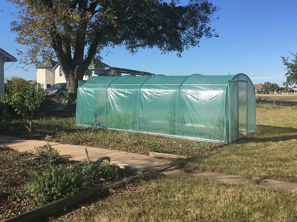 De serre is bedekt met een versterkte, groene transparante PE-folie (200 micron) die diffuus licht doorlaat om te voorkomen dat de planten in de serre verbranden bij warm weer. Het ruime ontwerp met twee rechtopstaande zijkanten van 1,5 m hoog, biedt voldoende ruimte om de volledige grondoppervlakte te benutten. De totale hoogte van de serre is 2 meter.
