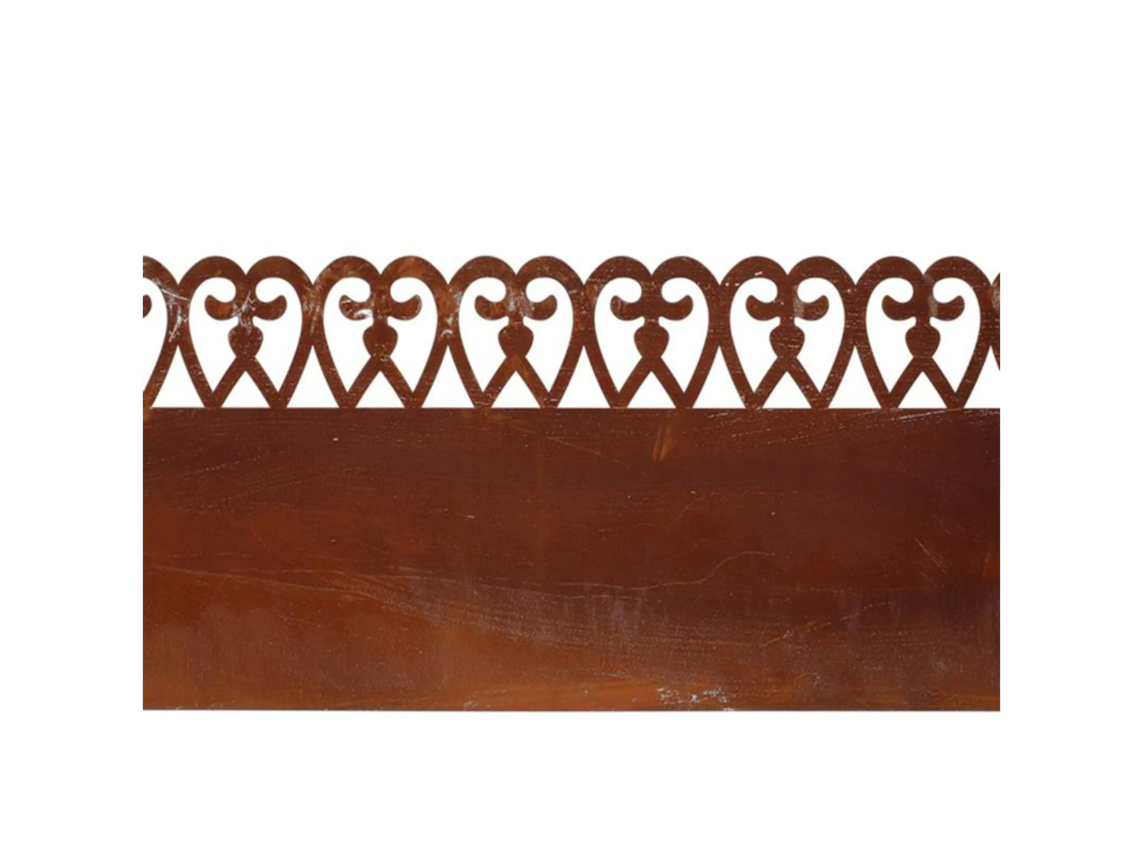 De rand is gemaakt van authentiek geroest metaal, wat zorgt voor een natuurlijke uitstraling en uitstekende weerbestendigheid. Of het nu regent, vriest of de zon fel schijnt - deze perkrand blijft jarenlang mooi. Bovendien is hij slijtvast en duurzaam, ideaal voor langdurig gebruik.