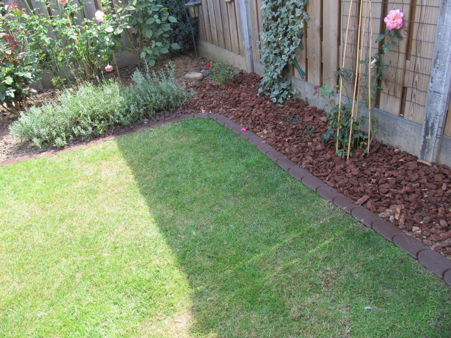 Deze tuinafboording vormt een slimme oplossing voor het aflijnen van het gazon. Enerzijds zorgt de afranding voor een duidelijke afbakening tussen de borders, paden en het gazon en anderzijds is deze zeer lage boord ideaal om met de grasmaaier vlot overheen te rijden.
