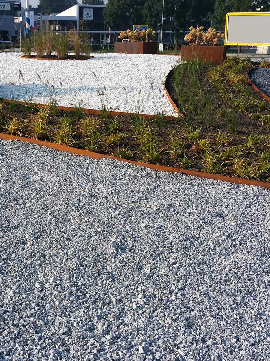 Na het maken van een telefonische afspraak wordt het siergrind in midibags op pallets aan huis geleverd. Dit gebeurt met een lange trailer met van 18 meter, het lossen gebeurt met een kooiaap.