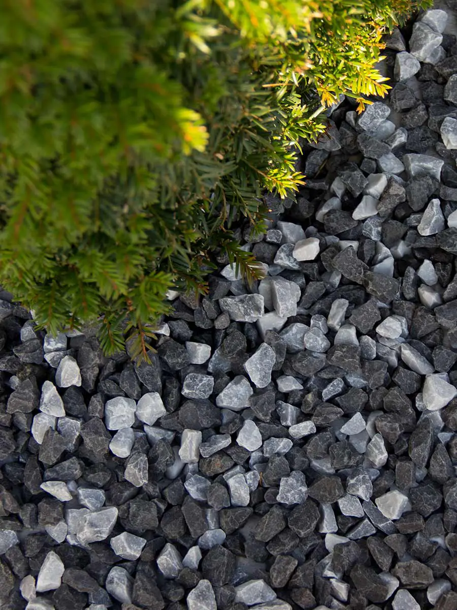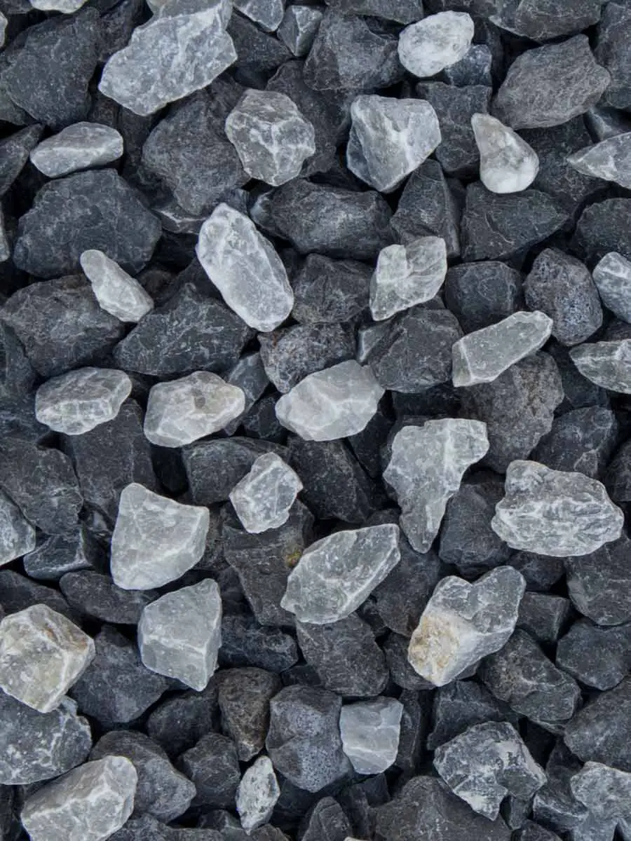 Zebra split is een bijzonder gekleurde split door de donkergrijze en lichte korrels. Deze kleurenmix is bekomen door twe verschillende splitsoorten te mixen.
