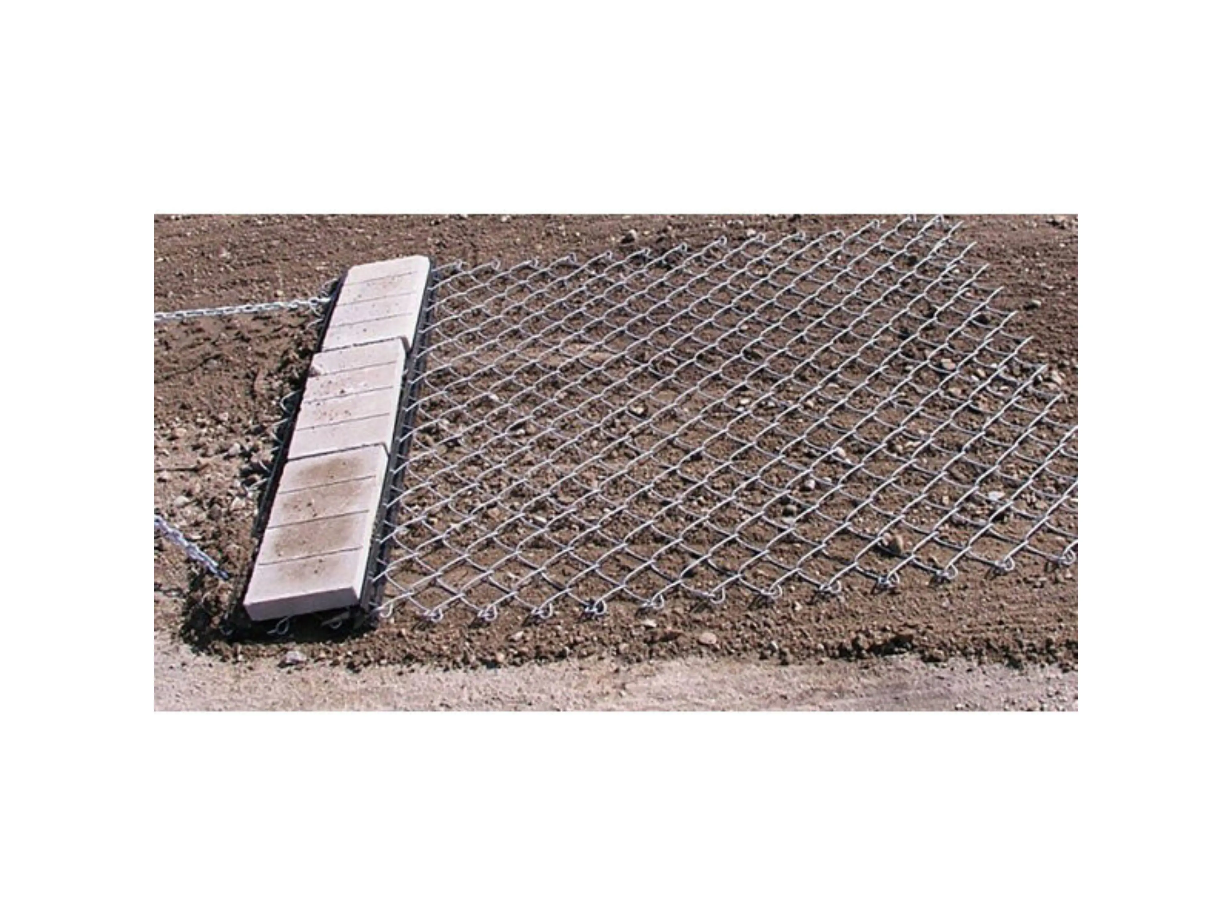Nivelleringsnet van gegalvaniseerd metaal. Maakt egalisatie mogelijk van losse grond of grind oprit. Het sleepnet kan gemakkelijk achter elke zitmaaier, ATV/quad of kleine tractor bevestigd worden.