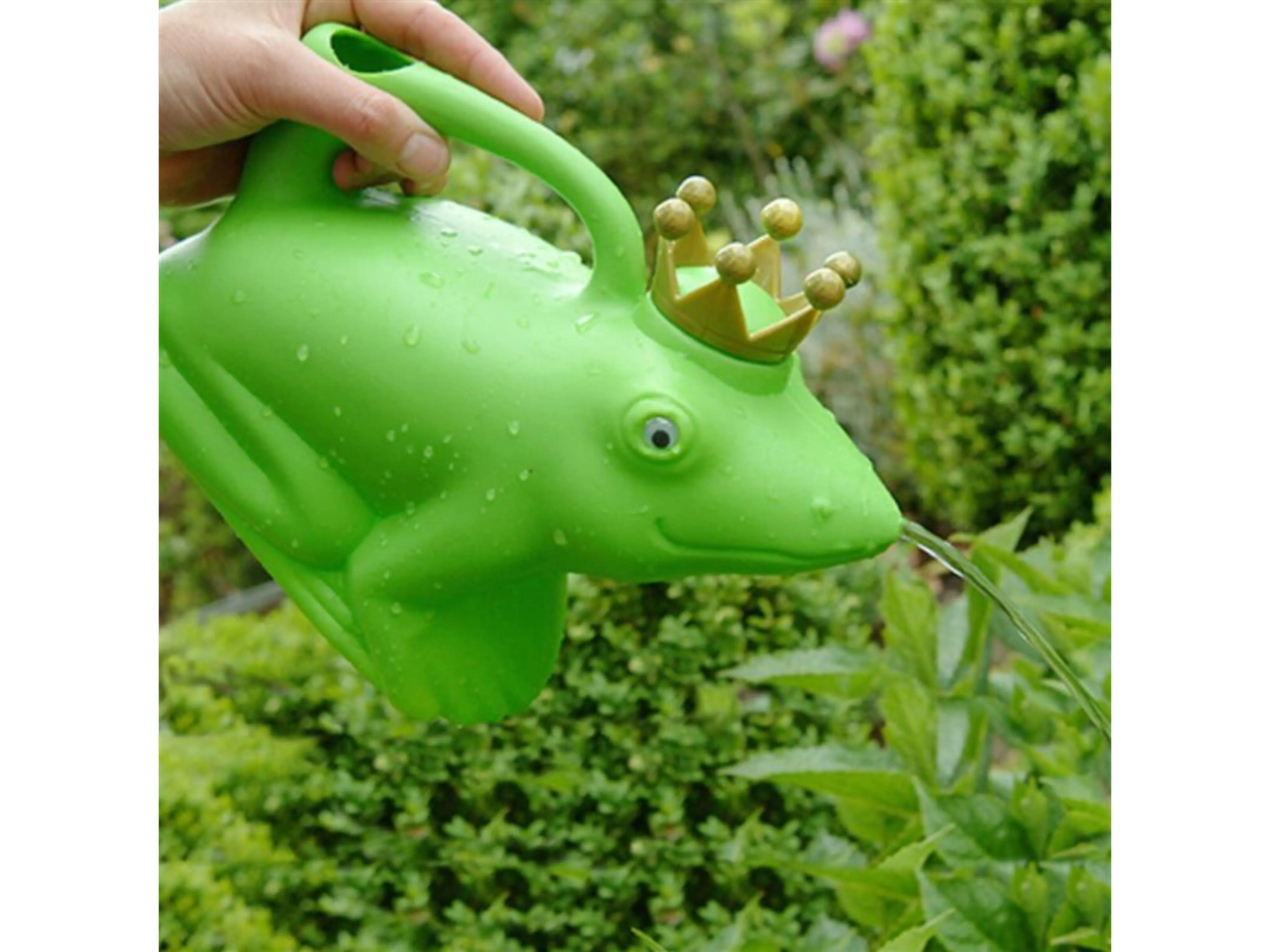 Een sprookjesachtige toevoeging aan elke tuin: deze vrolijke kikkerkoning gieter tovert gegarandeerd een glimlach op elk gezicht. De gieter is gemaakt van stevig kunststof en heeft een uniek ontwerp in de vorm van een kikker, compleet met kroontje. Door de praktische schenktuit in de mond kun je gericht en nauwkeurig water geven aan je planten, zowel binnen als buiten.