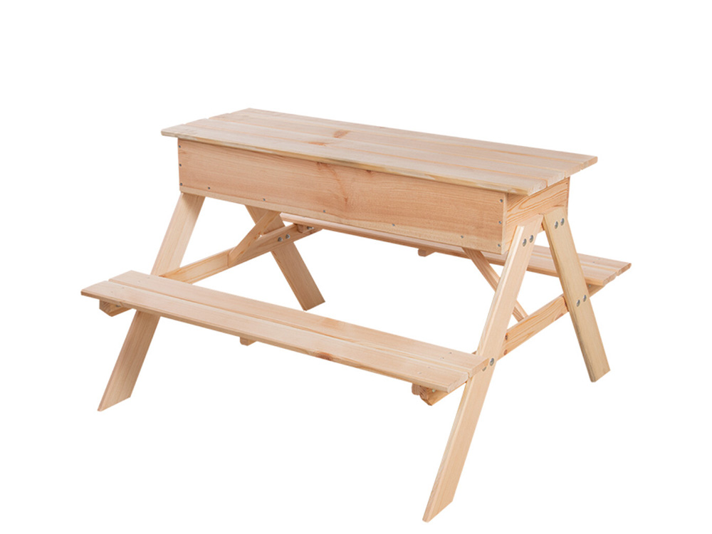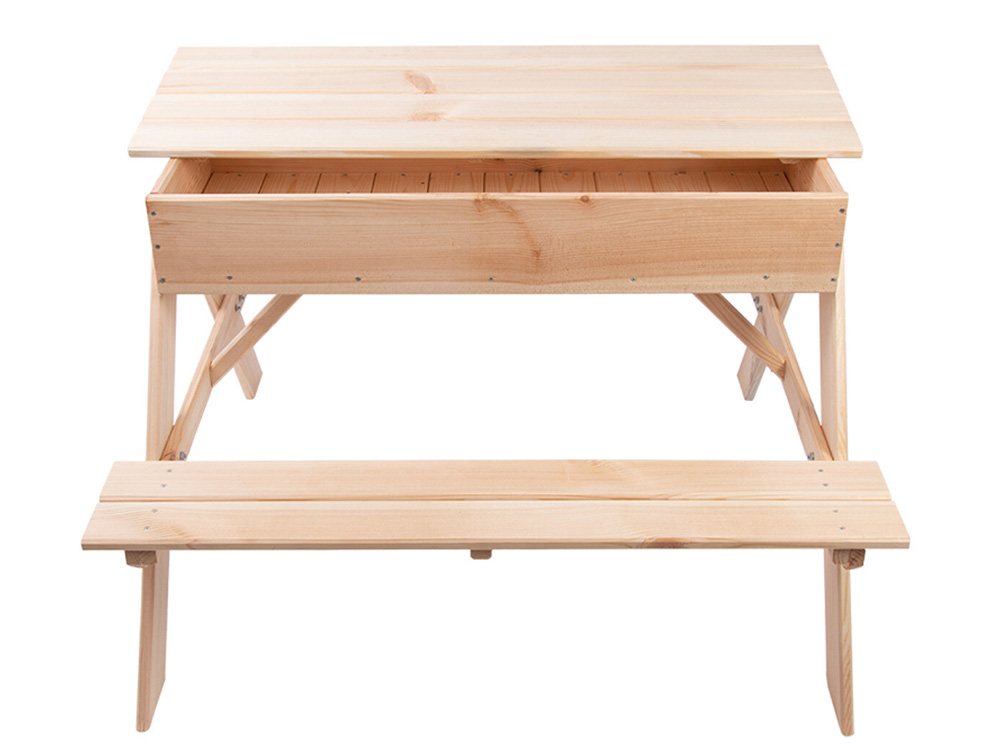 Het houten deksel houdt het zand netjes en vrij van ongewenste gasten. Zodra de kinderen klaar zijn met spelen in het zand, transformeer je met een eenvoudige handeling de zandbak weer in een picknicktafel. Hier kunnen ze genieten van een lekker tussendoortje, kunnen ze verder knutselen of tekenen.