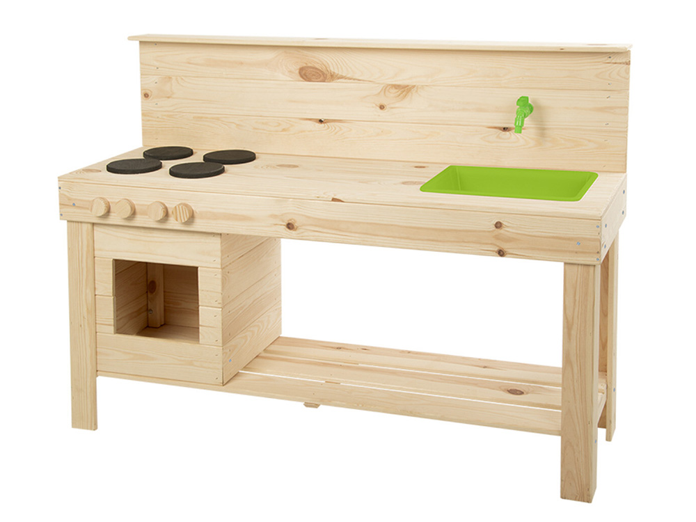 Met deze geweldige modderkeuken beleven kinderen de vreugde van het buitenspelen. Laat hun creativiteit de vrije loop terwijl ze heerlijke moddermaaltijden bereiden en moddercreaties maken.