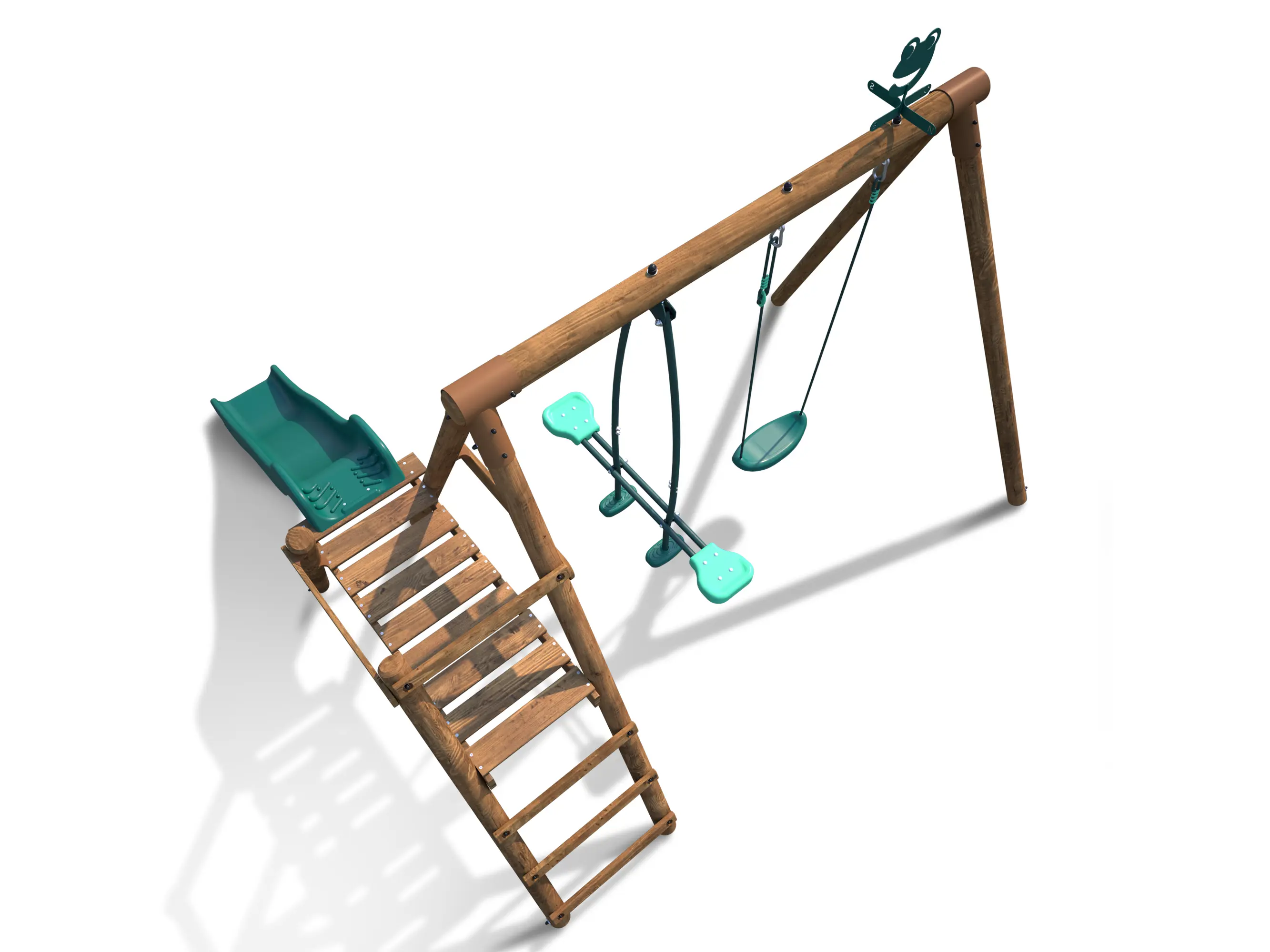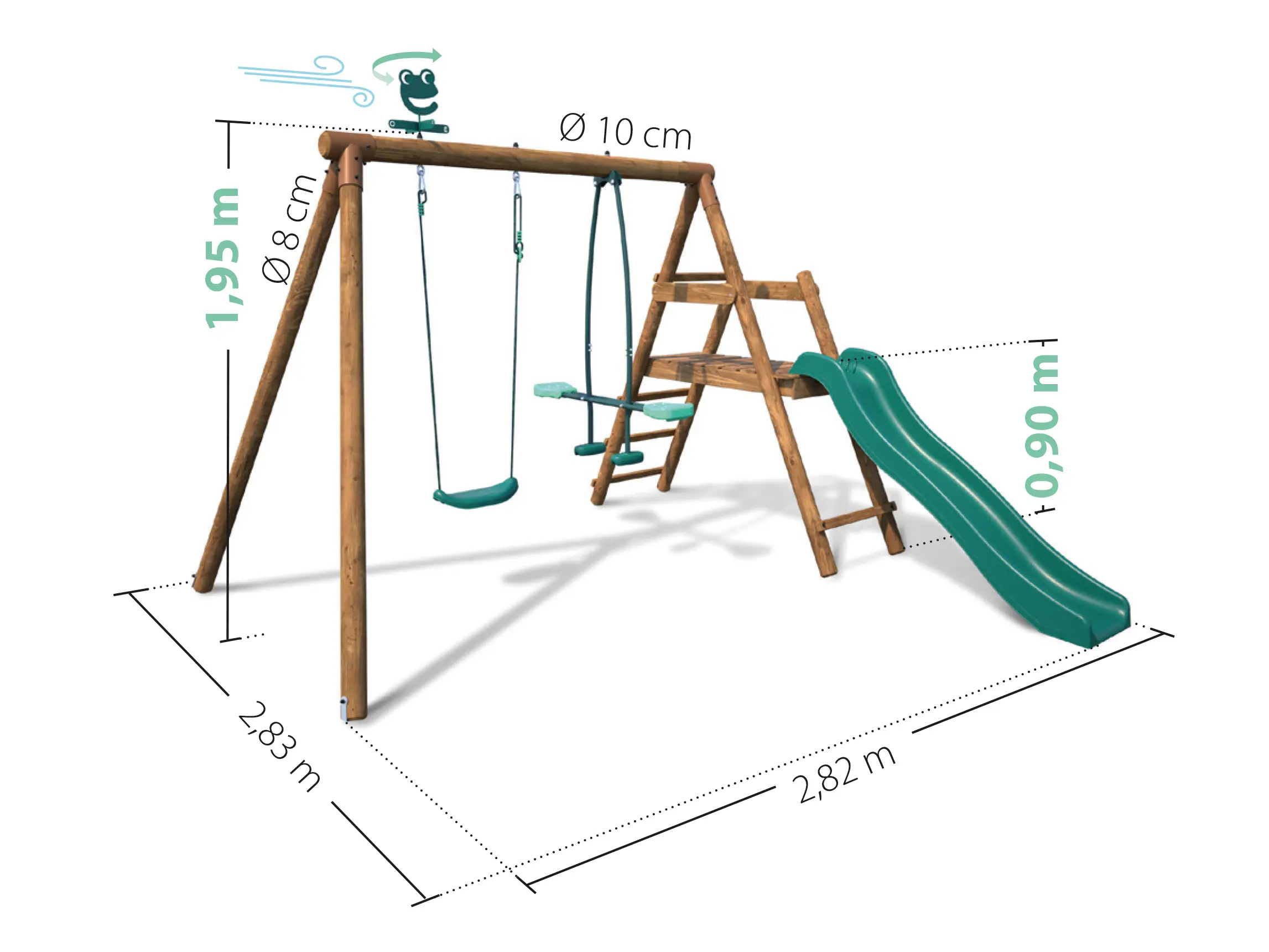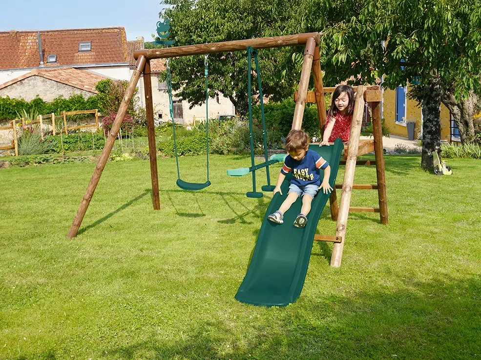 Een combinatie van een schommel en glijbaan maakt het buitenspelen in de tuin nog boeiender en avontuurlijker. Met de schommel Menthe heb je de keuze om solo te schommelen, gezellig met z'n tweeën op de duo-schommel te zitten, of van de glijbaan af te glijden. Dit speeltoestel staat garant voor jarenlang speelplezier!