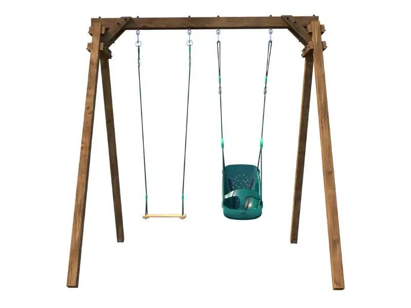 Moderniteit en eenvoud staan op het rendez-vous van deze Ambre portico met een houten structuur (inclusief hoeken en fittingen)! Toegankelijk vanaf 6 maanden, dankzij een babyschommel. Dit speeltoestel is ook uitgerust met een eenvoudige houten schommel.