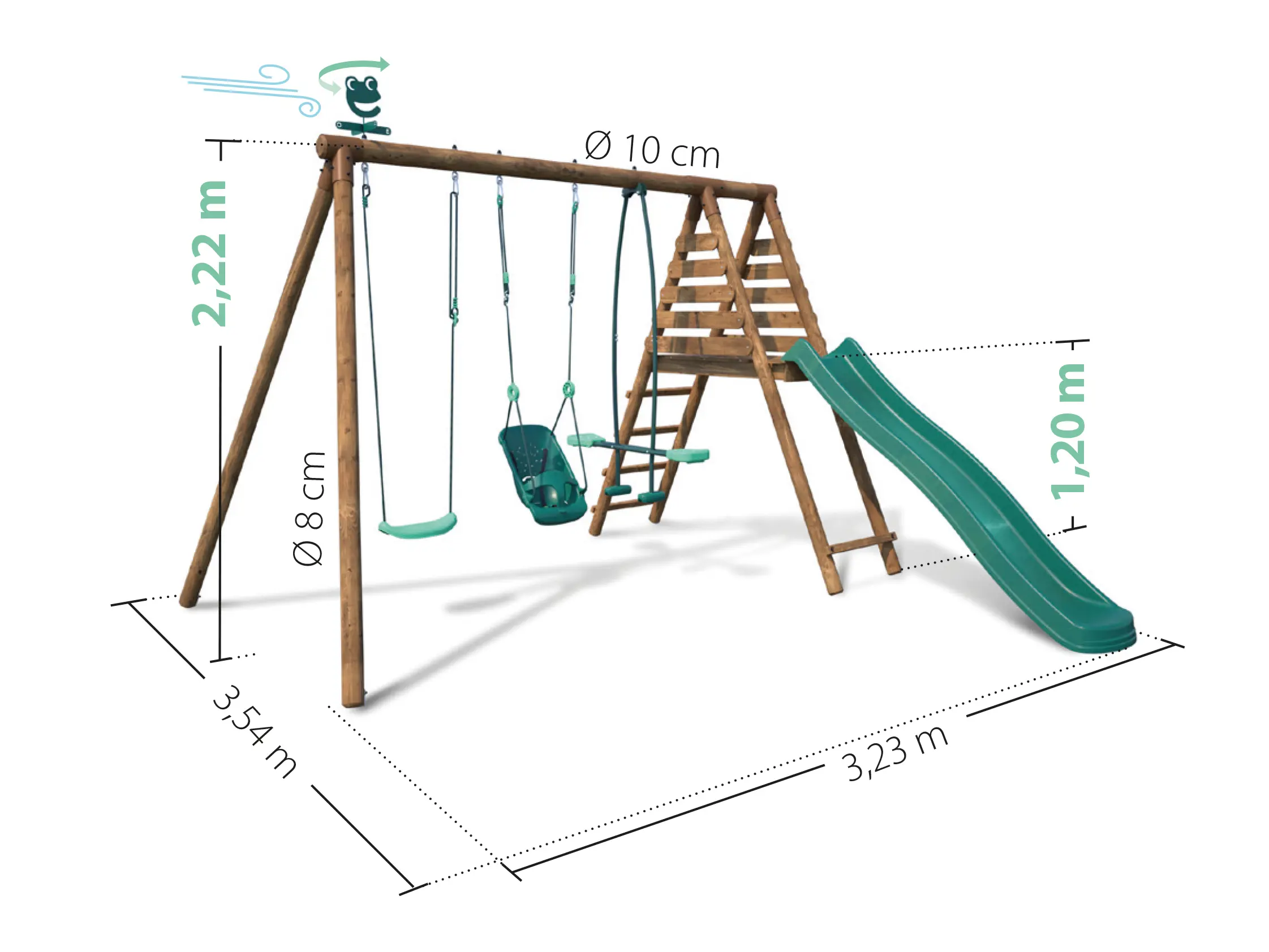 Hij is opgebouwd uit geïmpregneerd hout klasse 4, wat bescherming biedt tegen houtrot en zwammen. Hierdoor is de schommel duurzaam en staat hij garant voor jarenlang speelplezier.
