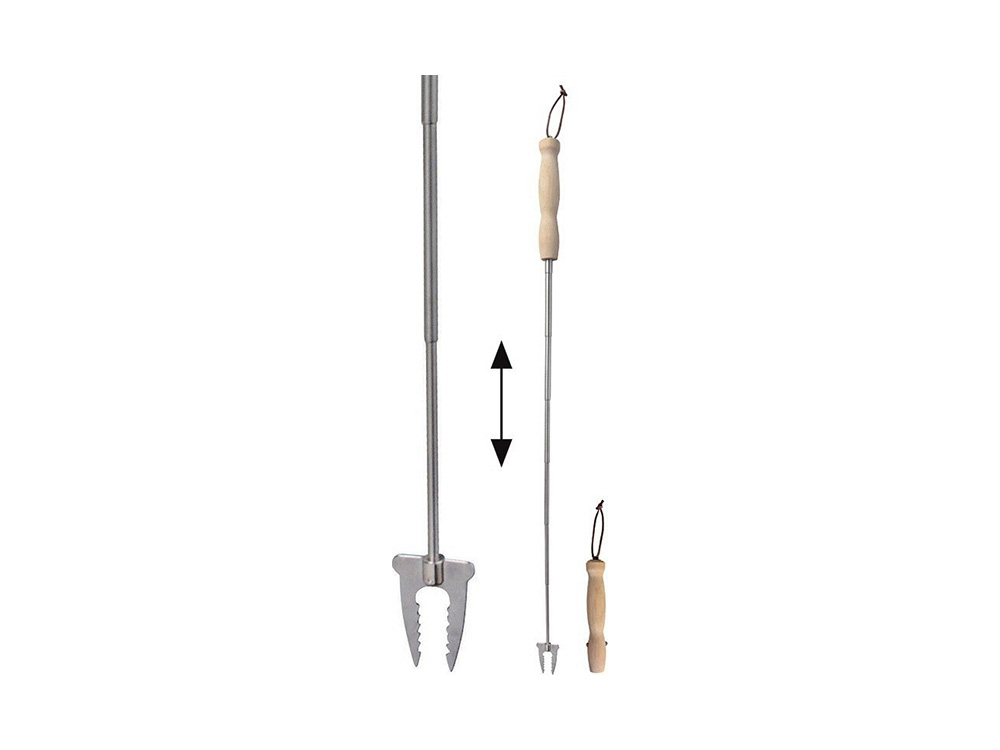 Barbecueën wordt nog leuker en veiliger met deze telescopische vork van Esschert Design. Plaats je favoriete lekkernij op de vork van deze handige tool en geniet van gezelligheid rond het vuur. Met een uitschuifbare lengte van 19 tot 80 cm biedt de vork ook de mogelijkheid om veilig boven een open vuur te gebruiken, met een comfortabele afstand tot de vlammen.