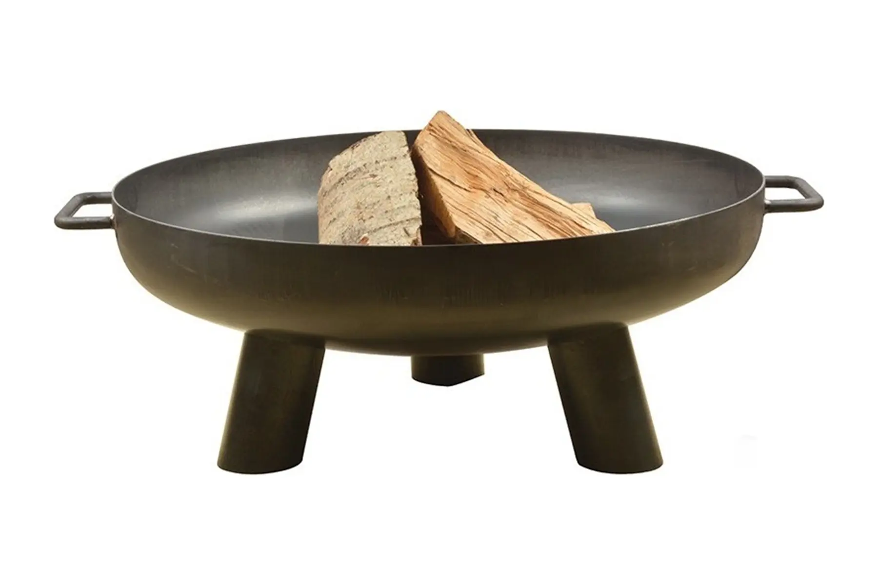 De schaal is gemaakt uit staal en is afgewerkt met een zwarte coating. Door de drie vaste ronde poten staat de vuurschaal stevig op de grond. Met de twee voorziene handvaten kan je de schaal makkelijk verplaatsen na gebruik. Onder invloed van vuur, weer en tijd zal de schaal een natuurlijke patine krijgen.