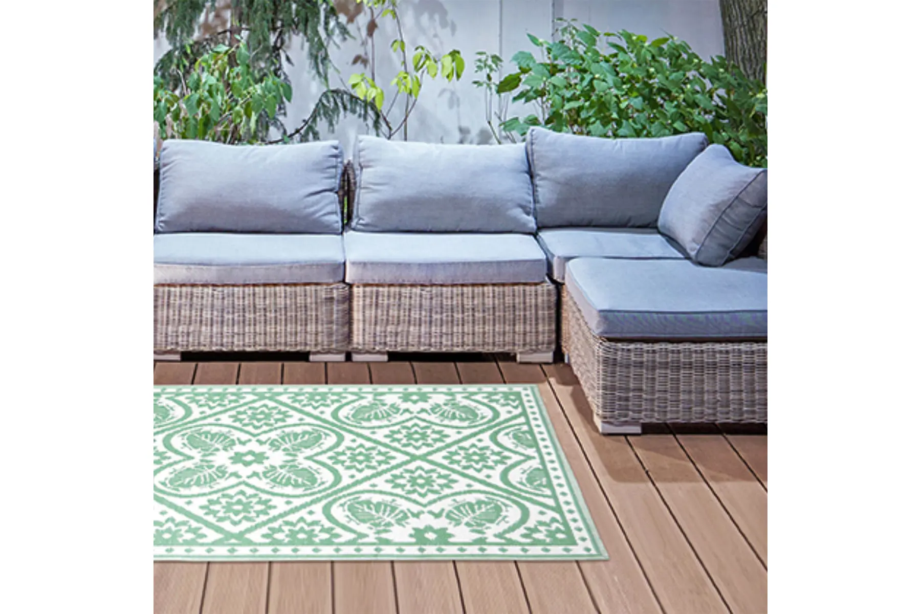 Het vloerkleed beschermd de ondergrond tegen vervuiling, is waterdoorlatend en onderhoudsvriendelijk! Geniet van de veelzijdigheid en het comfort van dit tapijt, terwijl het tegelijkertijd een opvallend accent aan je buitenleven toevoegt!