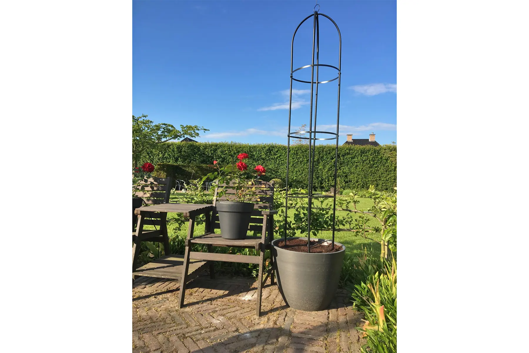 Deze mooie obelisk is de perfecte oplossing om op een eenvoudige manier jouw favoriete klimplant in de hoogte te laten groeien.