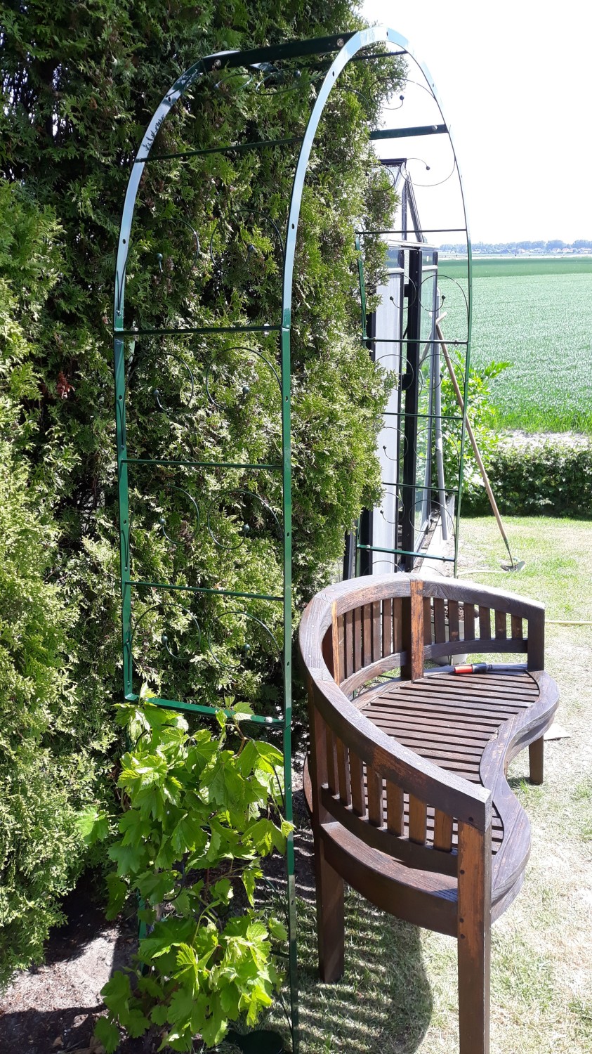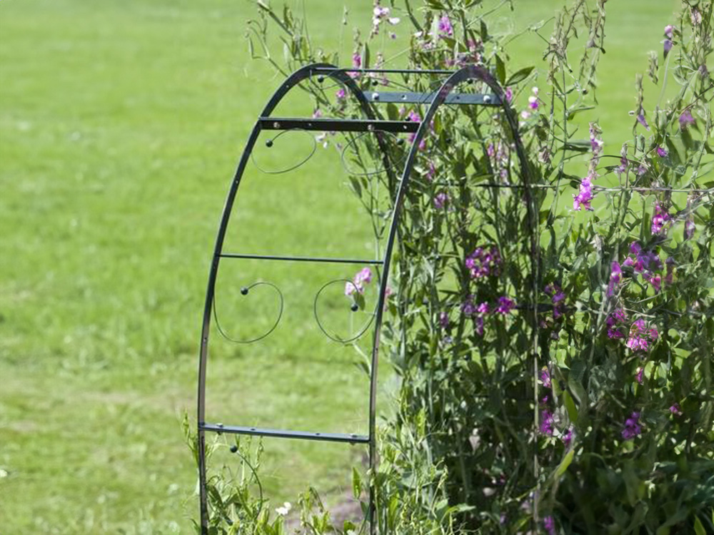 Rozenboog van zeer goede kwaliteit. Een degelijke en zeer stevige rozenboog die is voorzien van buigbare klimdraden om klimplanten te begeleiden. Dit maakt het gebruik van vele losse binddraadjes overbodig.