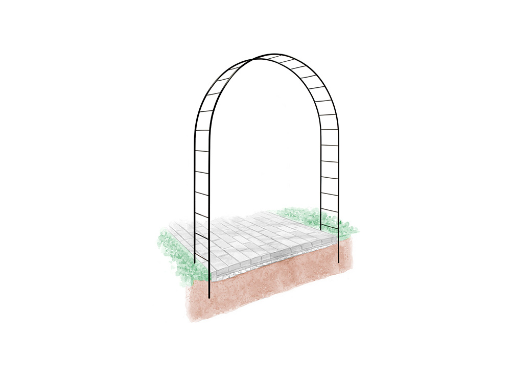 De rozenboog is kwalitatief afgewerkt met een zwarte coating. De boog kan 34 cm in de grond worden gemonteerd, bij voorkeur in een zandcementfundering voor extra stevigheid.