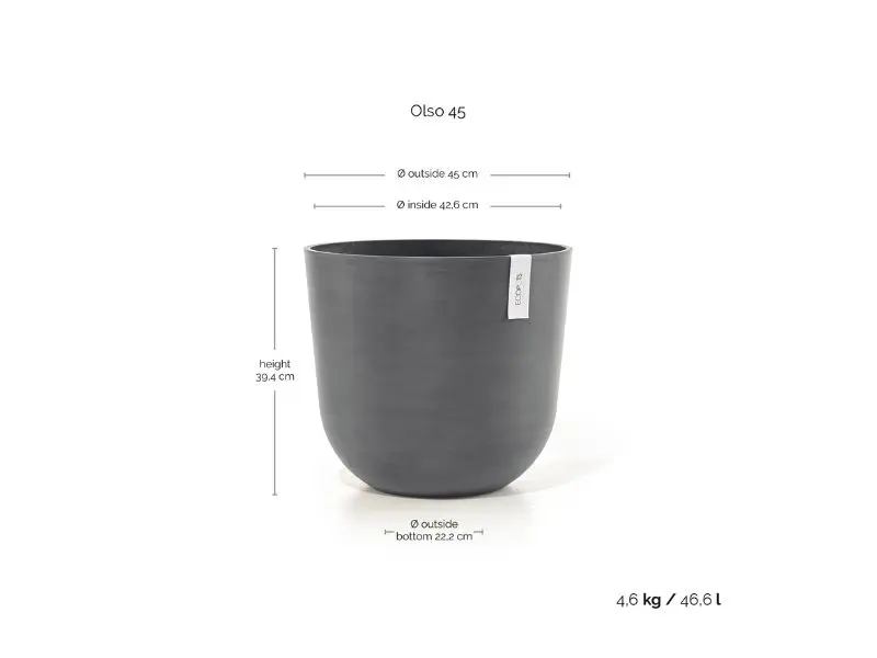 De Ecopots Oslo brengt klassieke elegantie en modern design perfect samen. Deze pot is vervaardigd van gerecycled materiaal en heeft een rubberen stop aan de onderkant, waardoor hij zowel binnen als buiten gebruikt kan worden. Met een ruim aanbod aan maten en kleuren vind je altijd de perfecte pot voor jouw plant of ruimte.