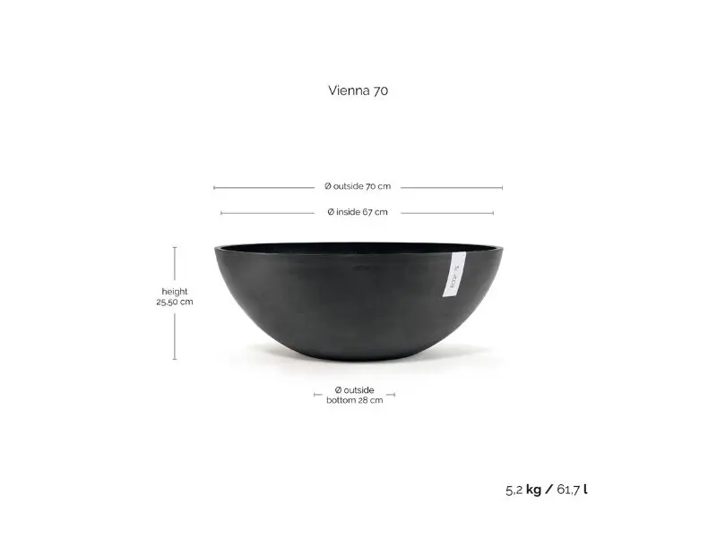 Op zoek naar een elegante pot voor bloemen, kruiden of een klein moestuintje? Maak kennis met de Ecopots Vienna. Deze grote, ronde en lage schaal is niet alleen een echte blikvanger, maar ook ontzettend praktisch. Dankzij de rubberen plug onderin kan overtollig water eenvoudig worden afgevoerd en is de pot 99,99% waterdicht – ideaal om er ook een kleine waterpartij of vijver van te maken.