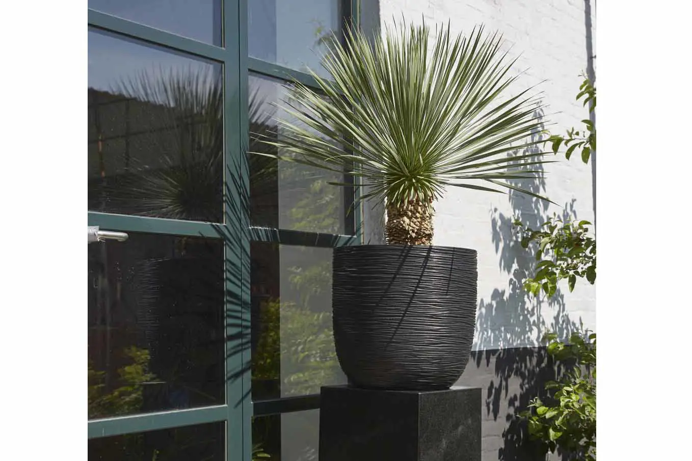 Deze bloempot van Capi Europe heeft een opmerkelijk design. Hij is gemaakt uit gerecycleerde materialen, een mix van polyethyleen en houtvezels en kan zowel binnen als buiten gebruikt worden. Alle potten uit de Rib collectie zijn voorzien van een textuur die gebaseerd is op de dansende lijnen van gevlochten riet.