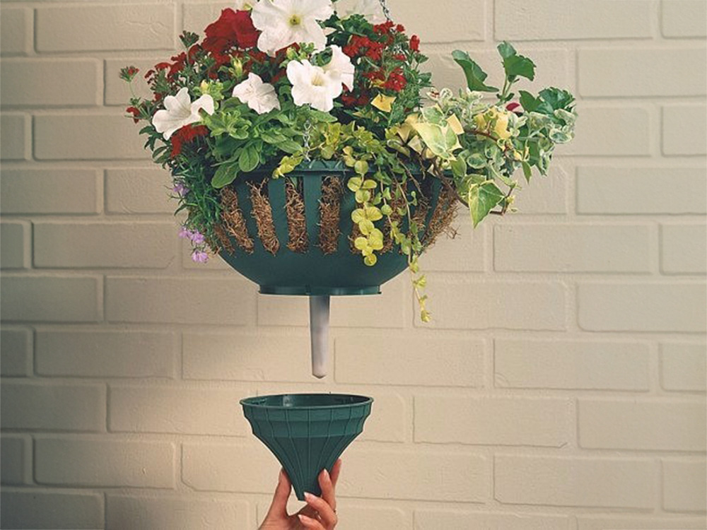 Bij het traditionele gieten verdwijnt er ruim 80% van het gietwater door morsen of verdamping. Door het water rechtstreeks in de onderliggende waterreservoir aan te brengen is dit verlies veel minder. Het is bovendien ook gemakkelijk om te controleren wanneer de hanging basket water nodig heeft, je kan het reservoir simpelweg losschroeven en bijvullen indien nodig. Gieten is ook veiliger en vraagt minder inspanning omdat we niet meer met zware gieters op een ladder moeten.