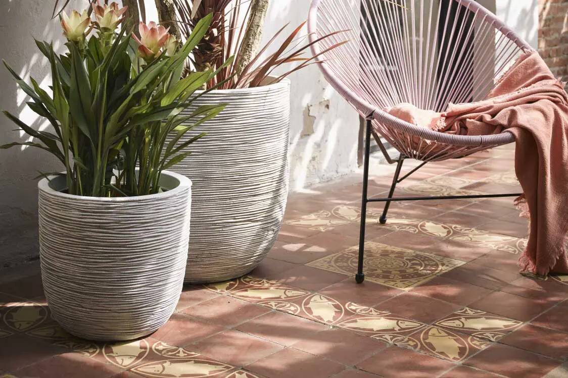 De binnenzijde heeft een opvallende oranje kleur, een knipoog naar de Nederlandse productie. Deze laag werkt ook isolerend en beschermt de pot en de plantenwortels in de winter tegen vorst en tijdens de zomermaanden tegen hoge temperaturen. De laag zorgt ook voor extra stevigheid waardoor de pot breukbestendig is.