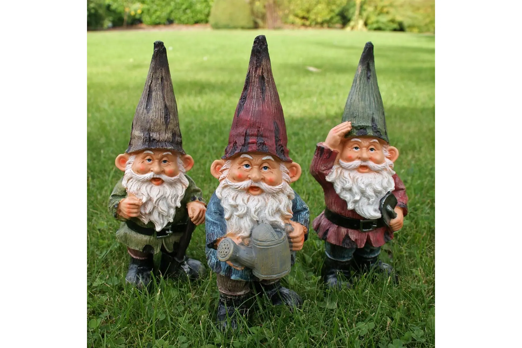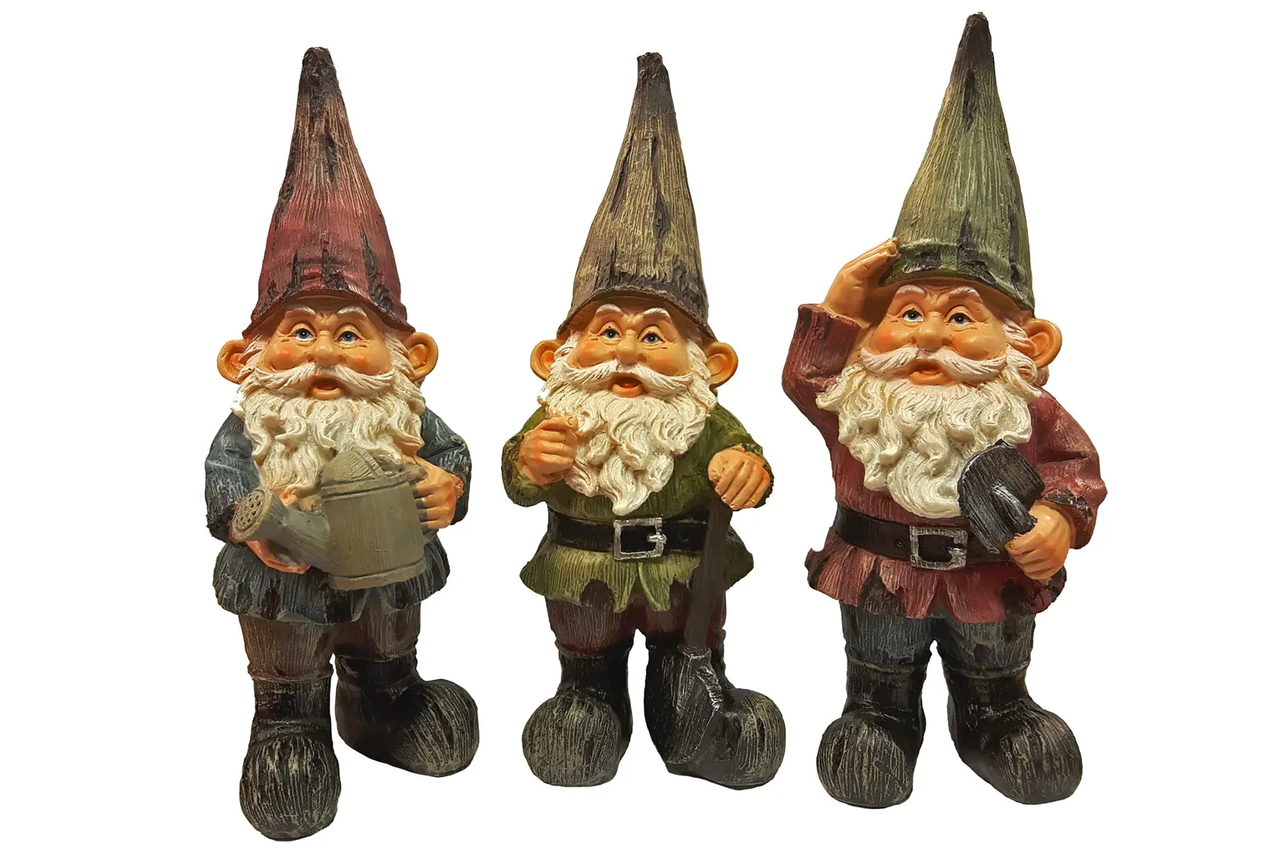 De kabouters vormen een hecht team en staan heel leuk in de tuin, de moestuin of op het terras. Met hun verschillende kleur van jasje en pinnenmuts zijn het toch 3 verschillende individuen. Ze brengen leven in de tuin en zorgen voor een blikvanger tussen de planten.