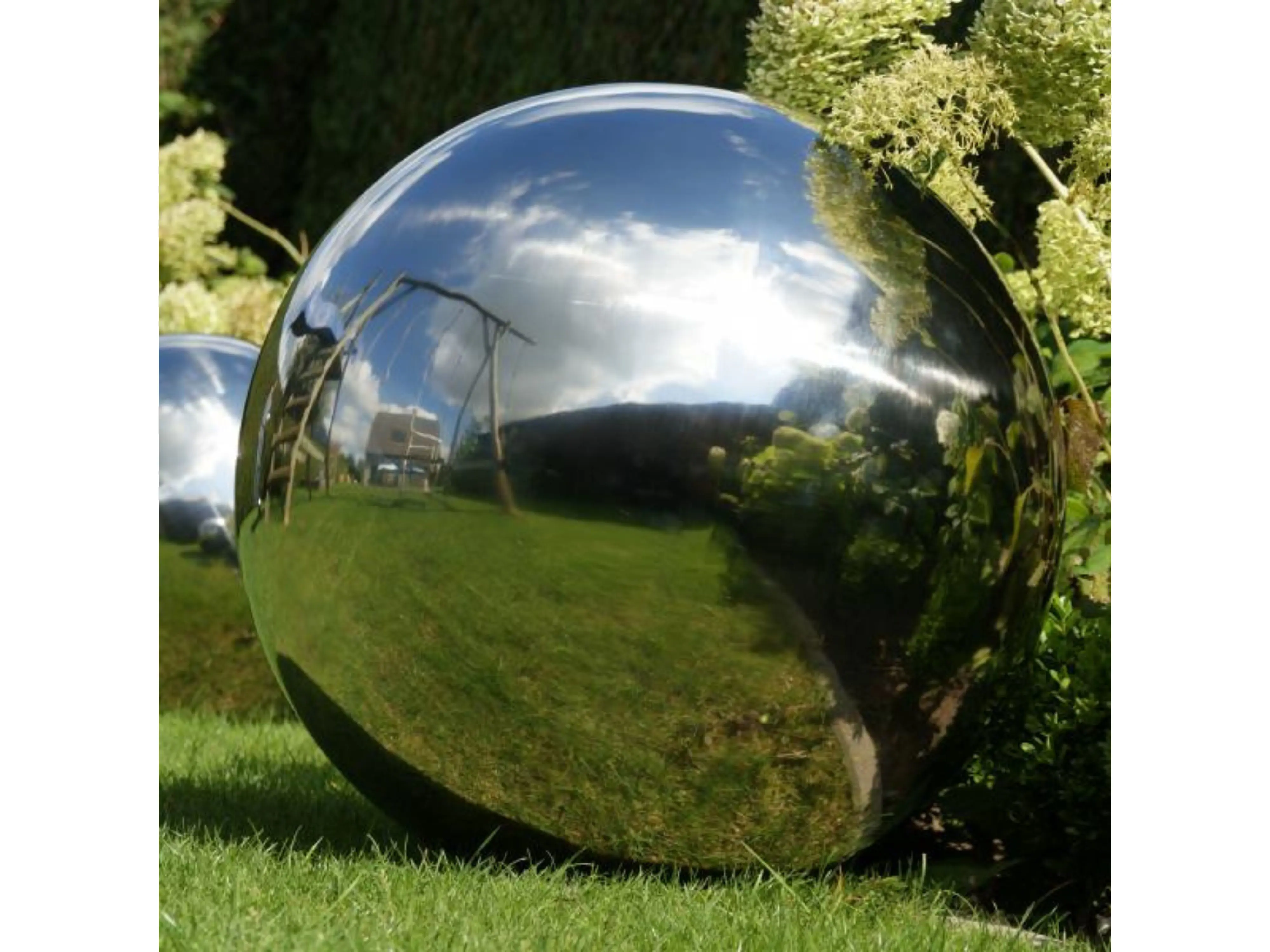 Tegenwoordig zie je deze spiegelende bollen steeds vaker in tuinen, niet meer om heksen te verjagen, maar vanwege hun esthetische waarde. De bol weerspiegelt het volledige panorama van de tuin, en geplaatst bij een vijver, schrikt de lichtweerkaatsing reigers af.