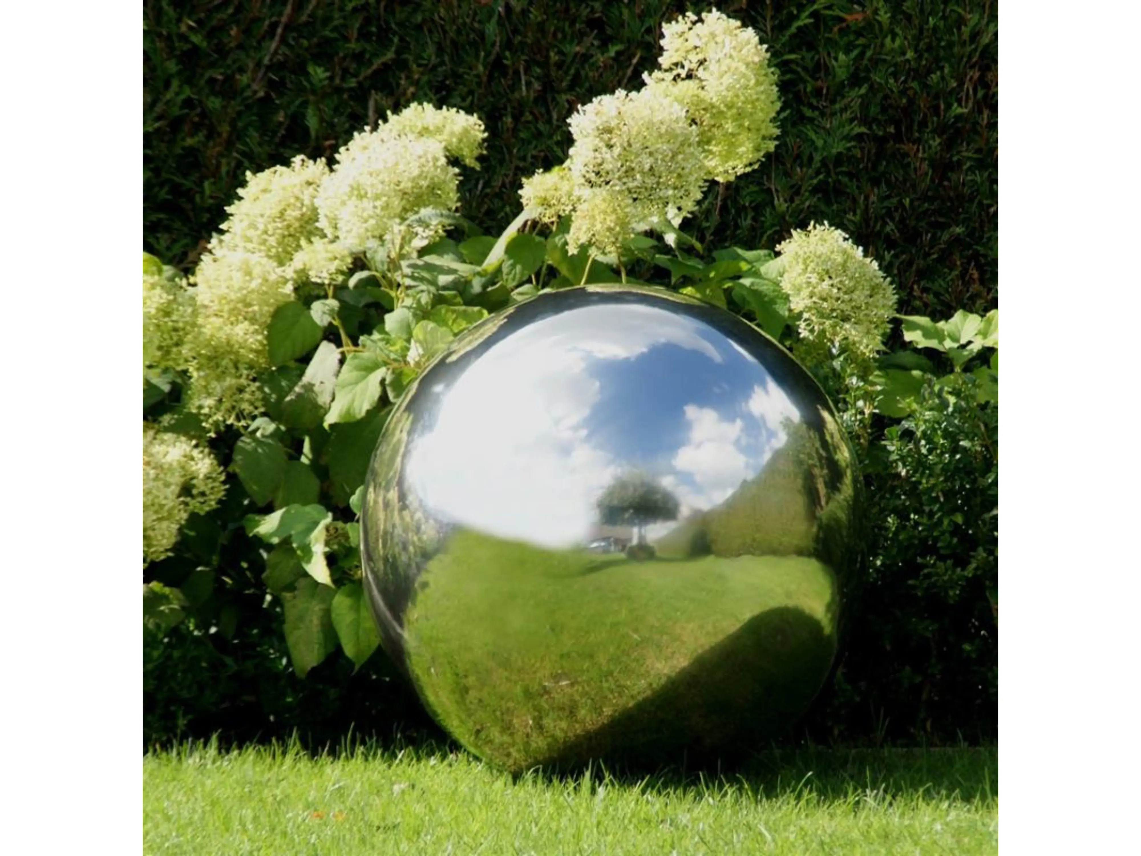 Tegenwoordig zie je deze spiegelende bollen steeds vaker in tuinen, niet meer om heksen te verjagen, maar vanwege hun esthetische waarde. De bol weerspiegelt het volledige panorama van de tuin, en geplaatst bij een vijver, schrikt de lichtweerkaatsing reigers af.